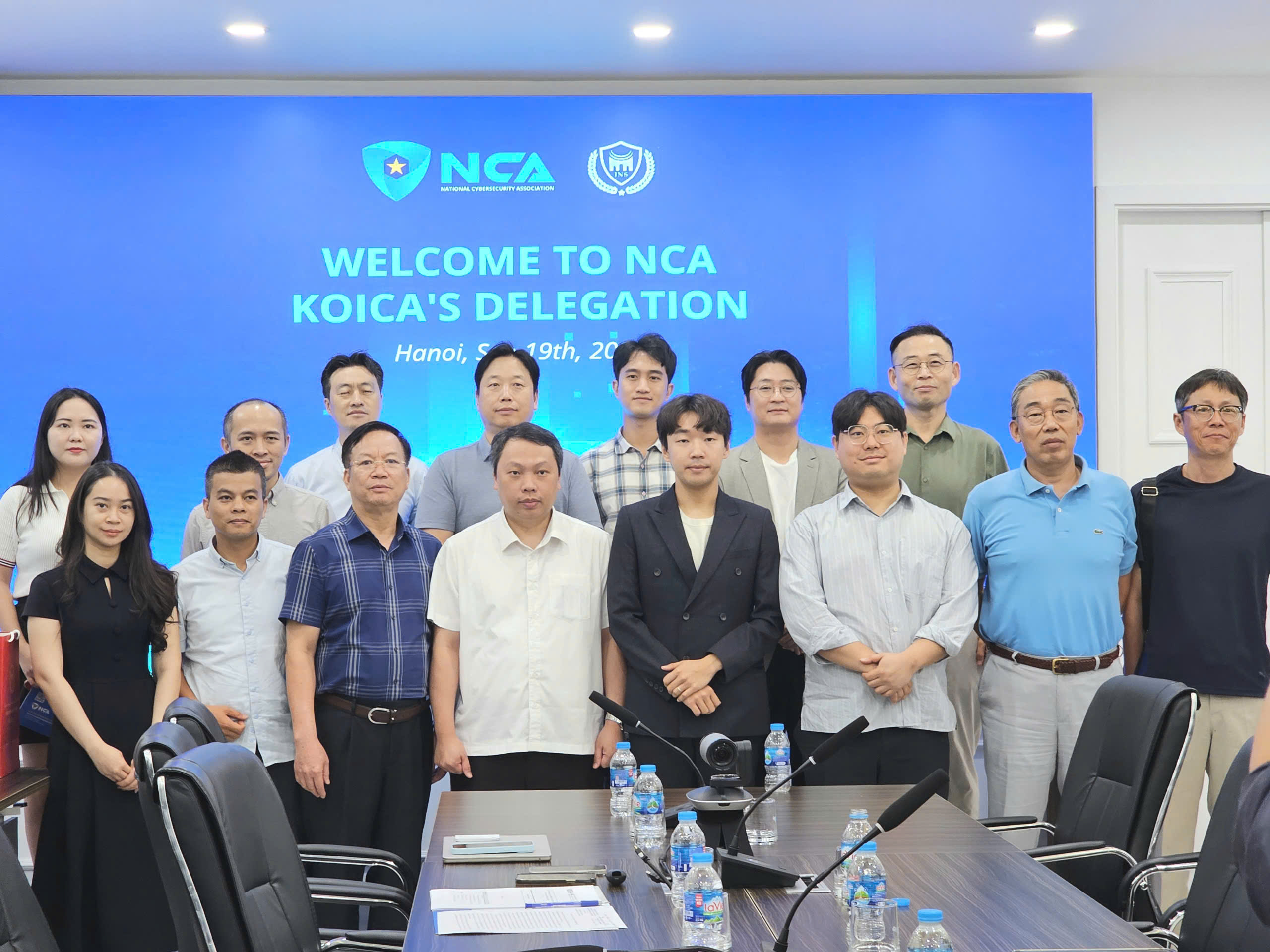 | Đại diện Hiệp hội An ninh mạng Quốc gia chụp ảnh lưu niêm cùng phái đoàn KOICA. |