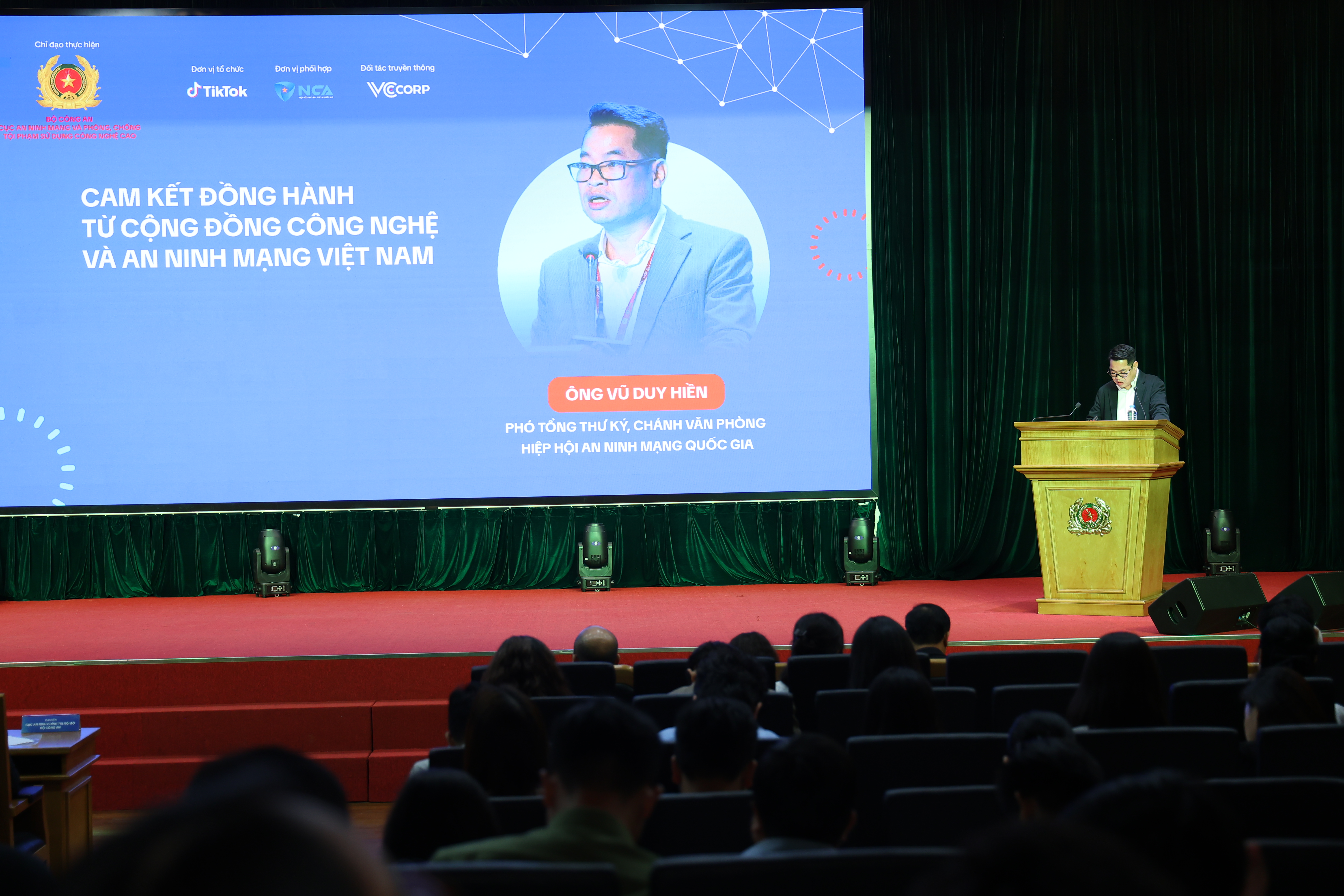 Phát biểu tại buổi lễ, ông Vũ Duy Hiền, Phó Tổng thư ký kiêm Chánh Văn phòng Hiệp hội An ninh mạng Quốc gia (NCA), nhấn mạnh: “Hiệp hội An ninh mạng Quốc gia rất vinh dự được đồng hành cùng Cục A05 - Bộ Công an và TikTok Việt Nam trong lễ phát động Chiến dịch ‘Phòng chống Lừa đảo Trực tuyến 2025’ đây là một sáng kiến truyền thông mang ý nghĩa xã hội sâu sắc, hướng tới mục tiêu chung: bảo vệ con người - bảo vệ niềm tin số - bảo vệ tương lai số của Việt Nam”.