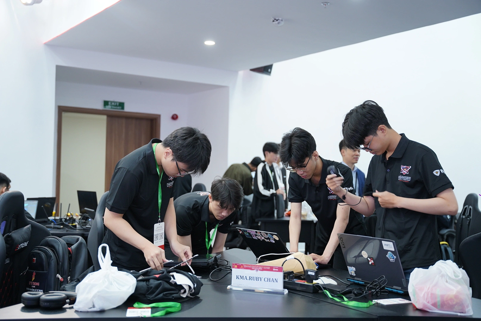 | Các đội nhanh chóng ổn định vị trí, kiểm tra máy chủ, căn chỉnh thiết bị, rà soát cấu hình mạng và trao đổi chiến thuật là hình ảnh dễ thấy ở mọi bàn thi. Không khí căng như trước giờ xuất kích. |