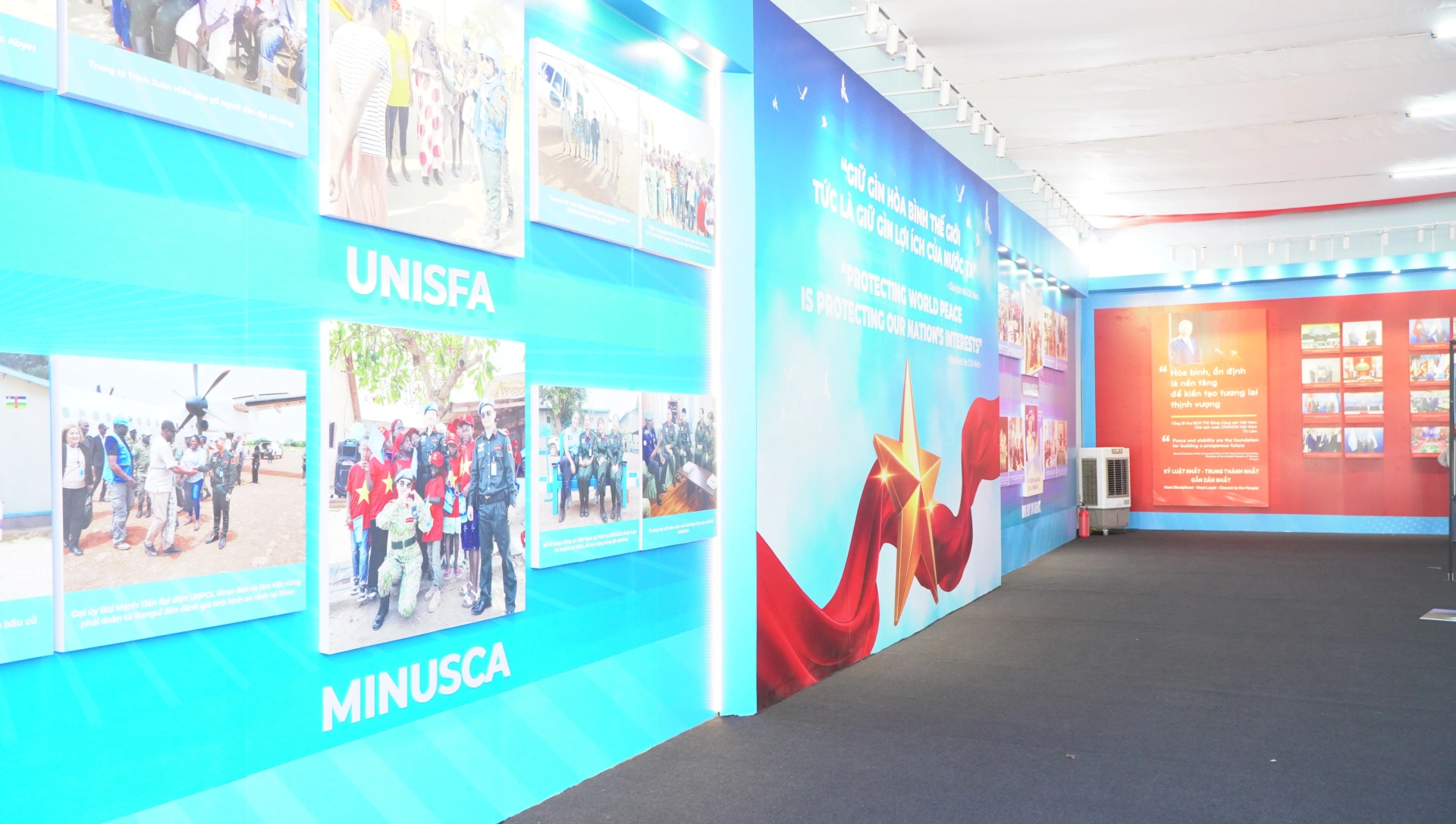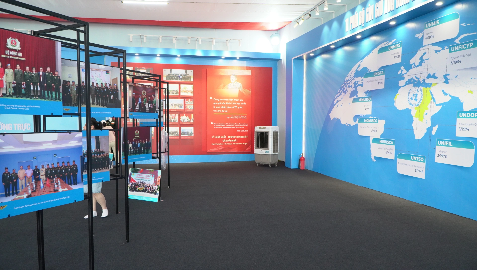 | Không gian triển lãm "Vì hòa bình thế giới" nằm trong khuôn khổ triển lãm “80 năm ANND - Lá chắn bình yên”. |