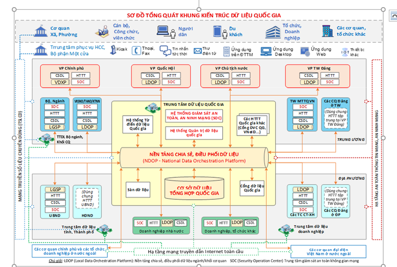 | Sơ đồ tổng quát khung kiến trúc dữ liệu quốc gia. |