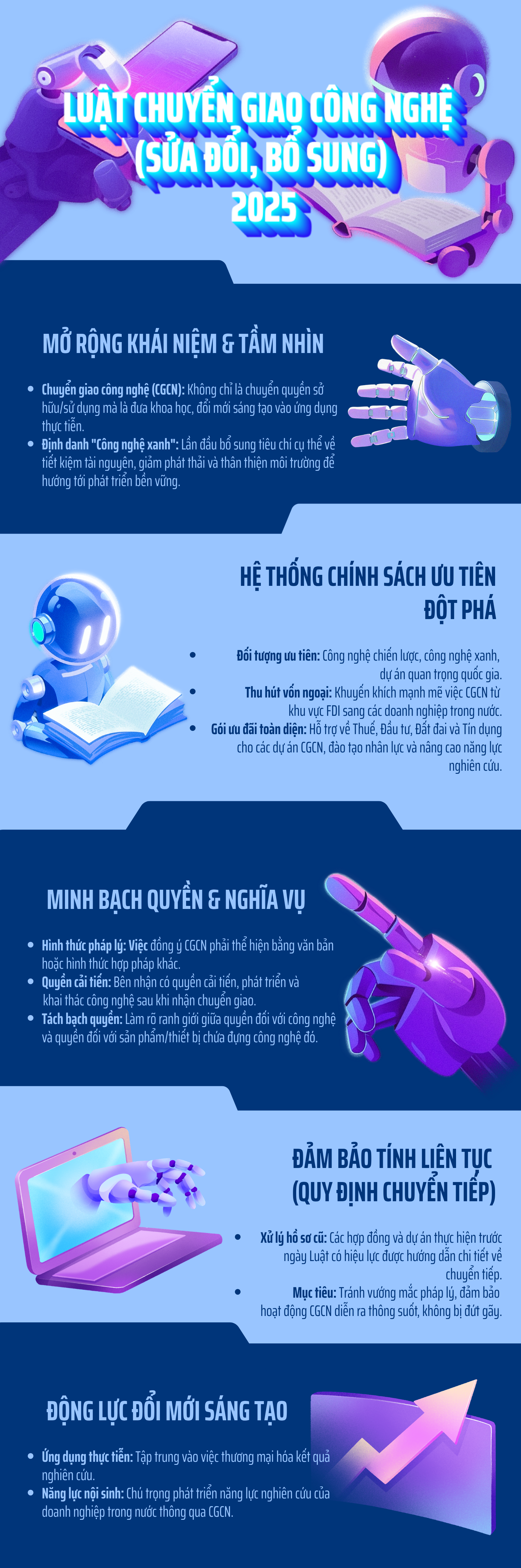 Luật sửa đổi, bổ sung một số điều của Luật Chuyển giao công nghệ có nhiều điều chỉnh đáng chú ý theo hướng cập nhật xu thế công nghệ mới và thúc đẩy đổi mới sáng tạo.