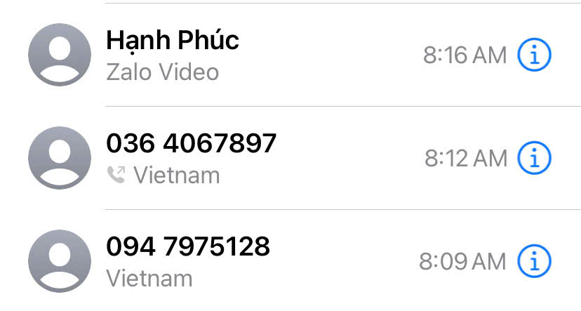 | Số điện thoại của đối tượng. Ảnh chụp màn hình. |