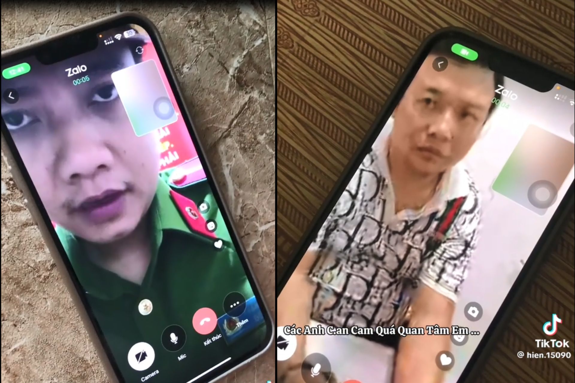 Đối tượng nhanh chóng dựng cảnh công an đang hỏi cung tội phạm vừa bị bắt, và đưa ra những bằng chứng chứng minh là công an trang bị từ quần áo đến chức vụ bảng tên rõ ràng.