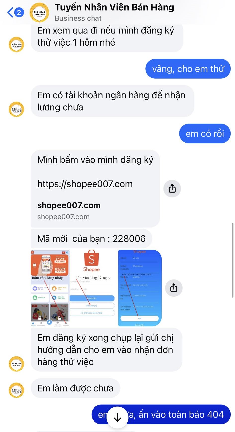Vấn đề đáng lo ngại là kẻ lừa đảo không giả mạo Shopee trực tiếp nữa mà mượn uy tín các brand nhỏ để tạo cảm giác tin cậy. Mục tiêu của chúng là các bạn sinh viên đang cần việc làm online tại nhà, công việc nhẹ, lương theo ngày, nhưng chưa có nhiều kinh nghiệm nhận diện chiêu trò lừa đảo".