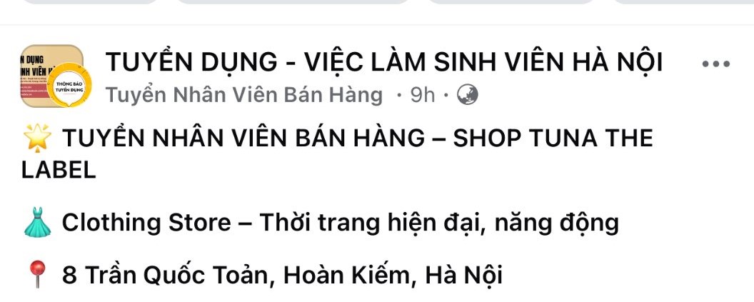 "Chúng tôi nhận được báo tin từ một khách hàng: bạn ấy tình cờ lướt thấy bài đăng tuyển dụng mạo danh shop, được đăng bởi một tài khoản lạ. May mắn là bạn đã cẩn thận nhắn tin trực tiếp hỏi page để xác minh lại thông tin và cũng là muốn thông báo cho shop, cảm ơn bạn rất nhiều.