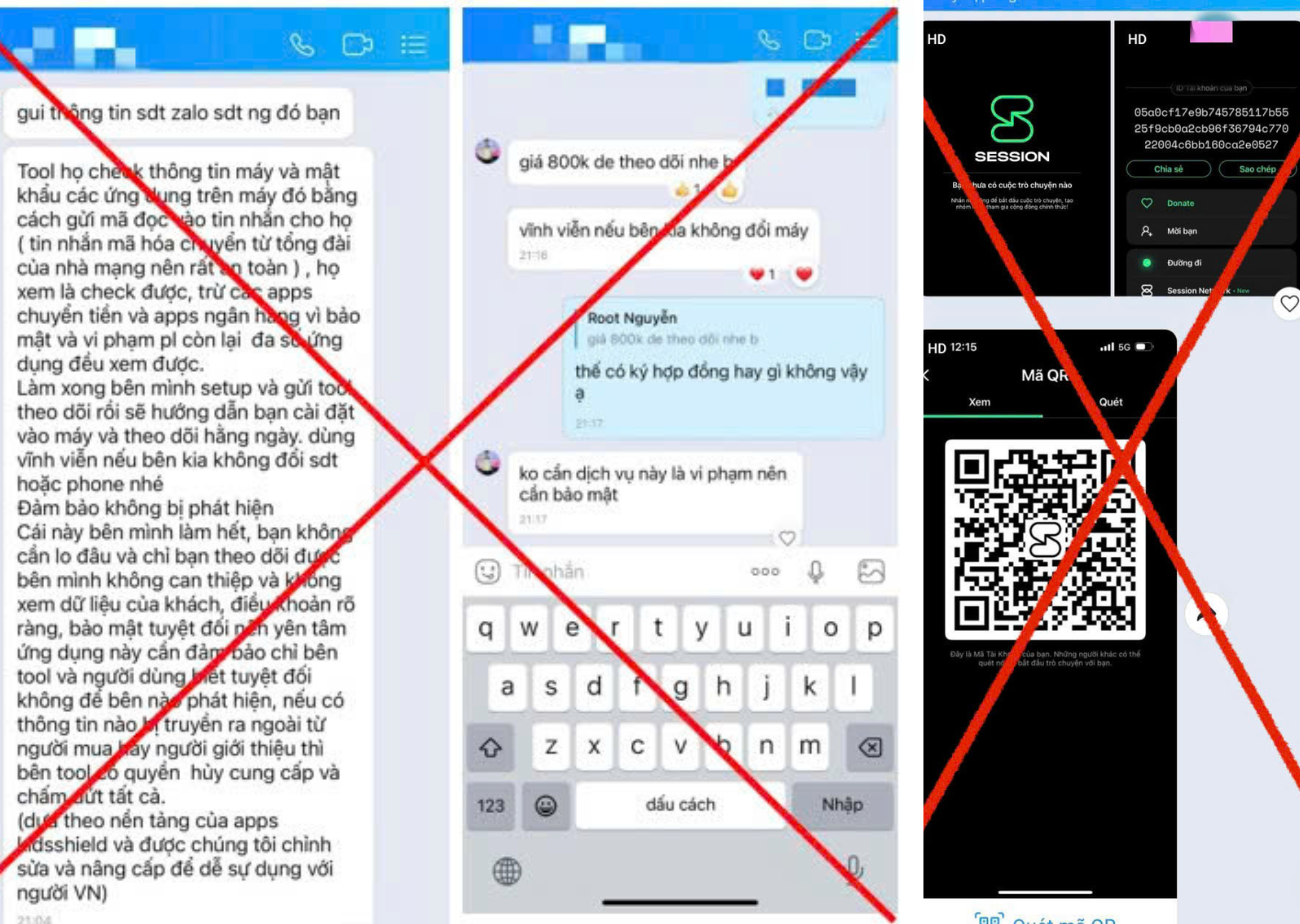 Thứ nhất, không bao giờ quét mã QR được gửi bởi tài khoản không rõ nguồn gốc. Không tải các ứng dụng quảng cáo khả năng “định vị”, “xem trộm tin nhắn”, “theo dõi từ xa”, vì tất cả đều là mồi bẫy.