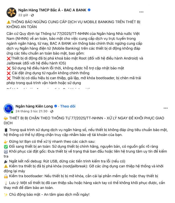 | Nhiều ngân hàng thông báo ngưng cung cấp dịch vụ Mobile Banking nếu thiết bị không đạt chuẩn an toàn |