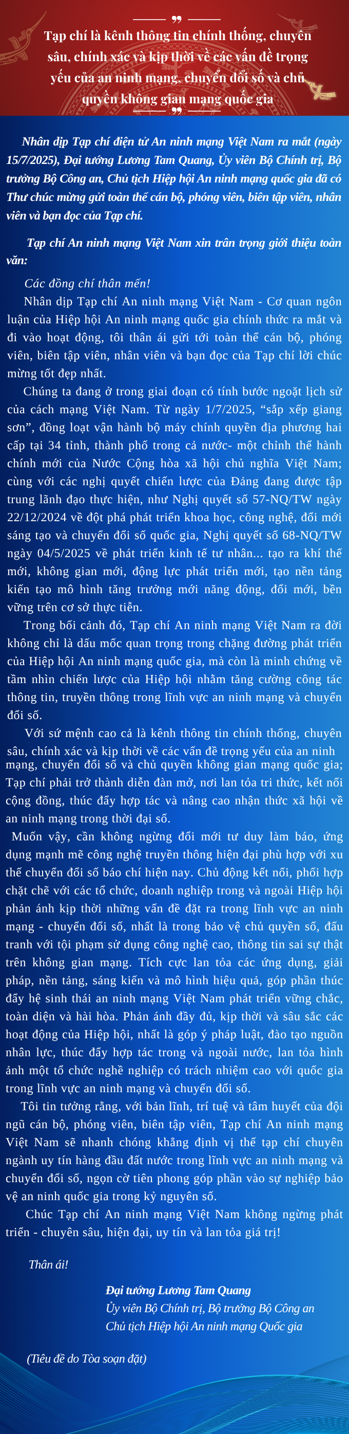 Tạp chí là kênh thông tin chính thống, chuyên sâu, kịp thời về an ninh mạng, chuyển đổi số