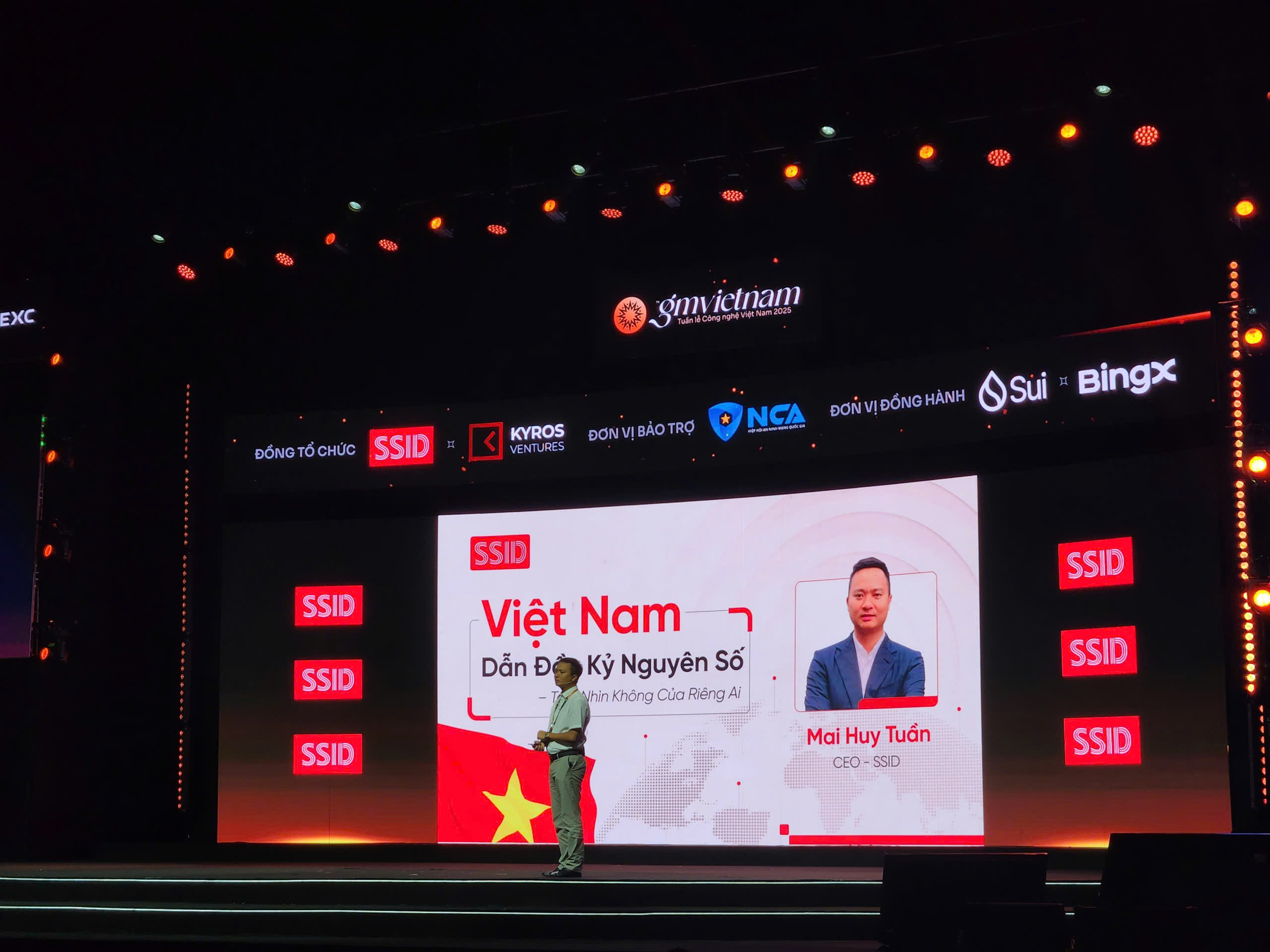 | Ông Mai Huy Tuần, CEO Công ty cổ phần Công nghệ số SSI (SSID) chia sẻ tại Diễn đàn GM Vietnam 2025. Ảnh PV. |