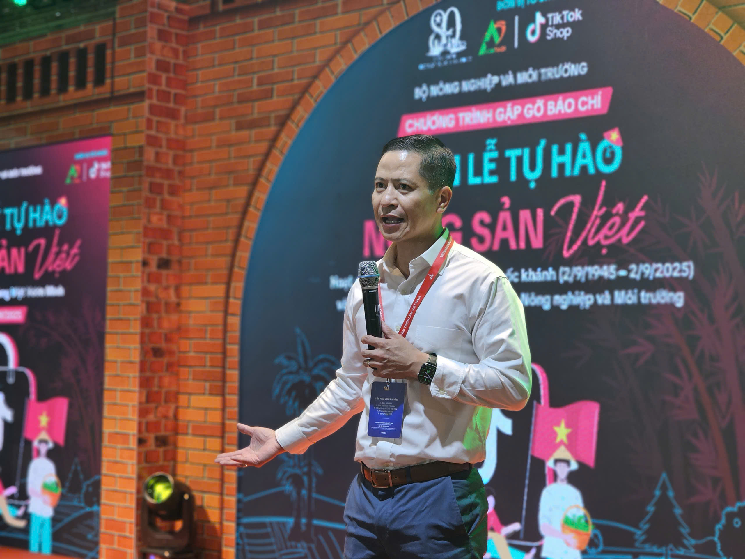 | Ông Nguyễn Minh Tiến, Giám đốc Trung tâm Xúc tiến thương mại nông nghiệp (Agritrade) chia sẻ tại sự kiện. Ảnh TU. |
