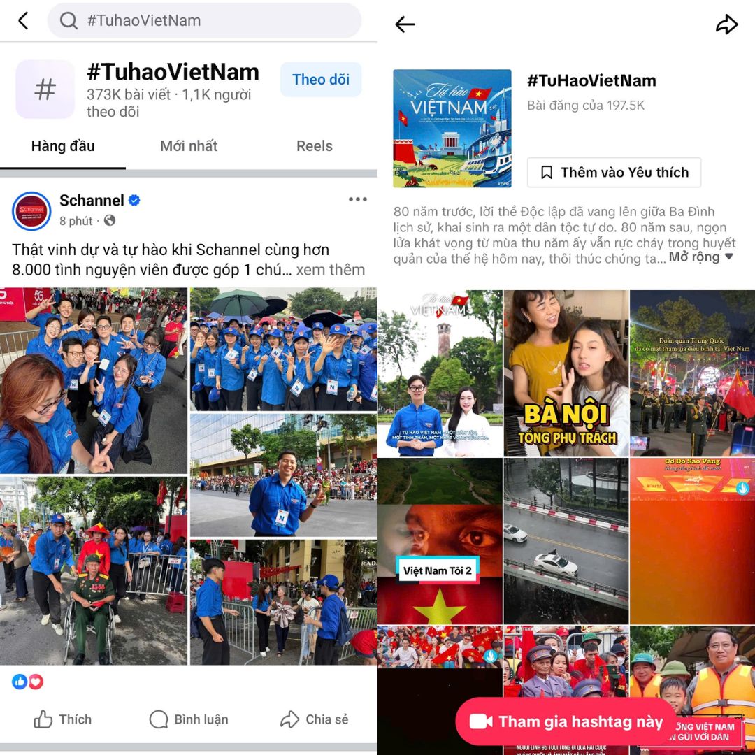 Hashtag #TuhaoVietNam trở thành “sợi chỉ đỏ” kết nối hàng triệu câu chuyện cá nhân, từ em nhỏ ở vùng cao lần đầu khoác trên mình lá cờ Tổ quốc, đến kiều bào xa xứ chia sẻ khoảnh khắc Quốc khánh nơi đất khách. Việc tập trung vào một hashtag chủ đạo giúp chiến dịch tránh bị phân tán, đồng thời tạo “bản sắc số” rõ rệt cho lễ kỷ niệm.