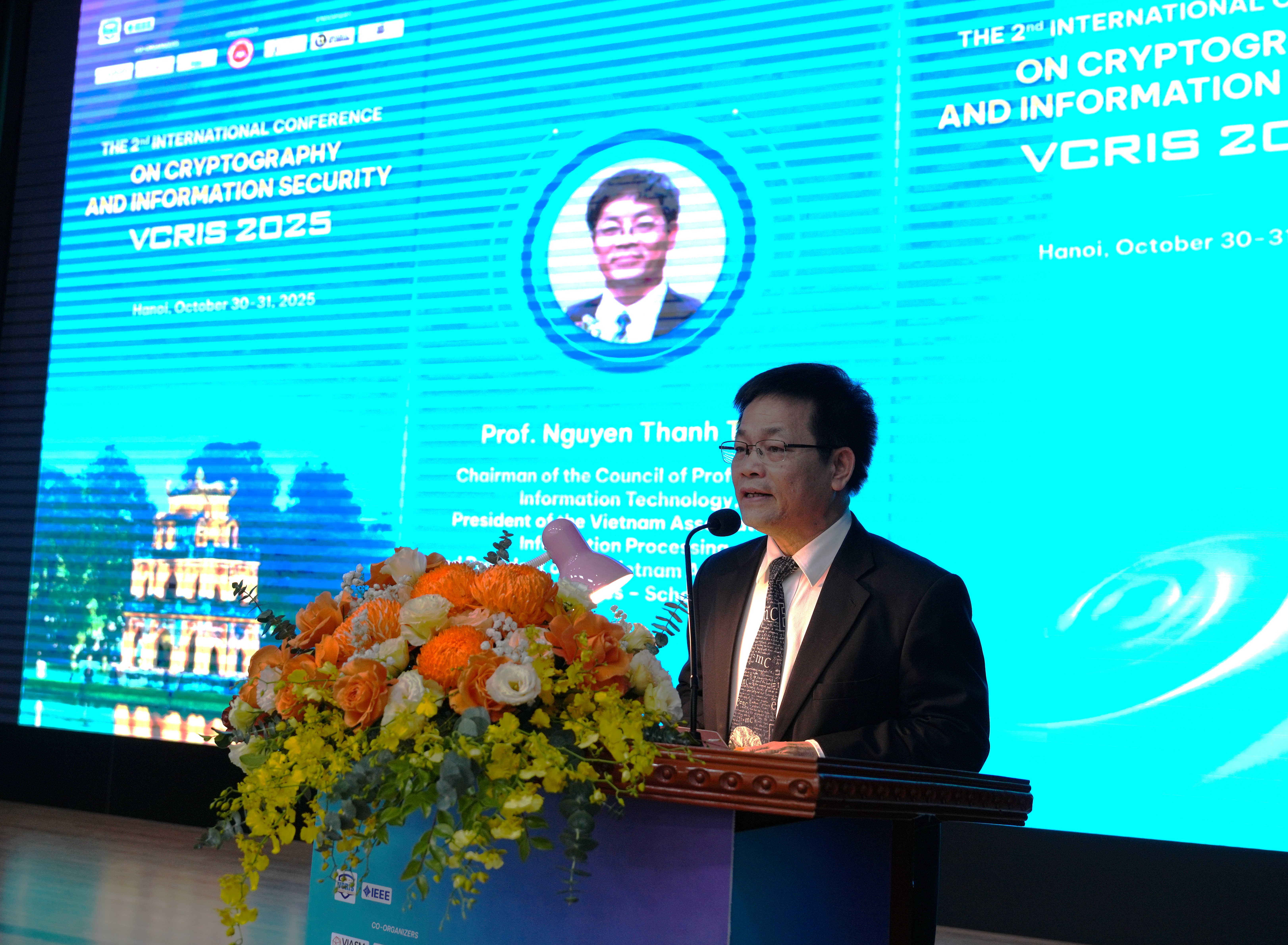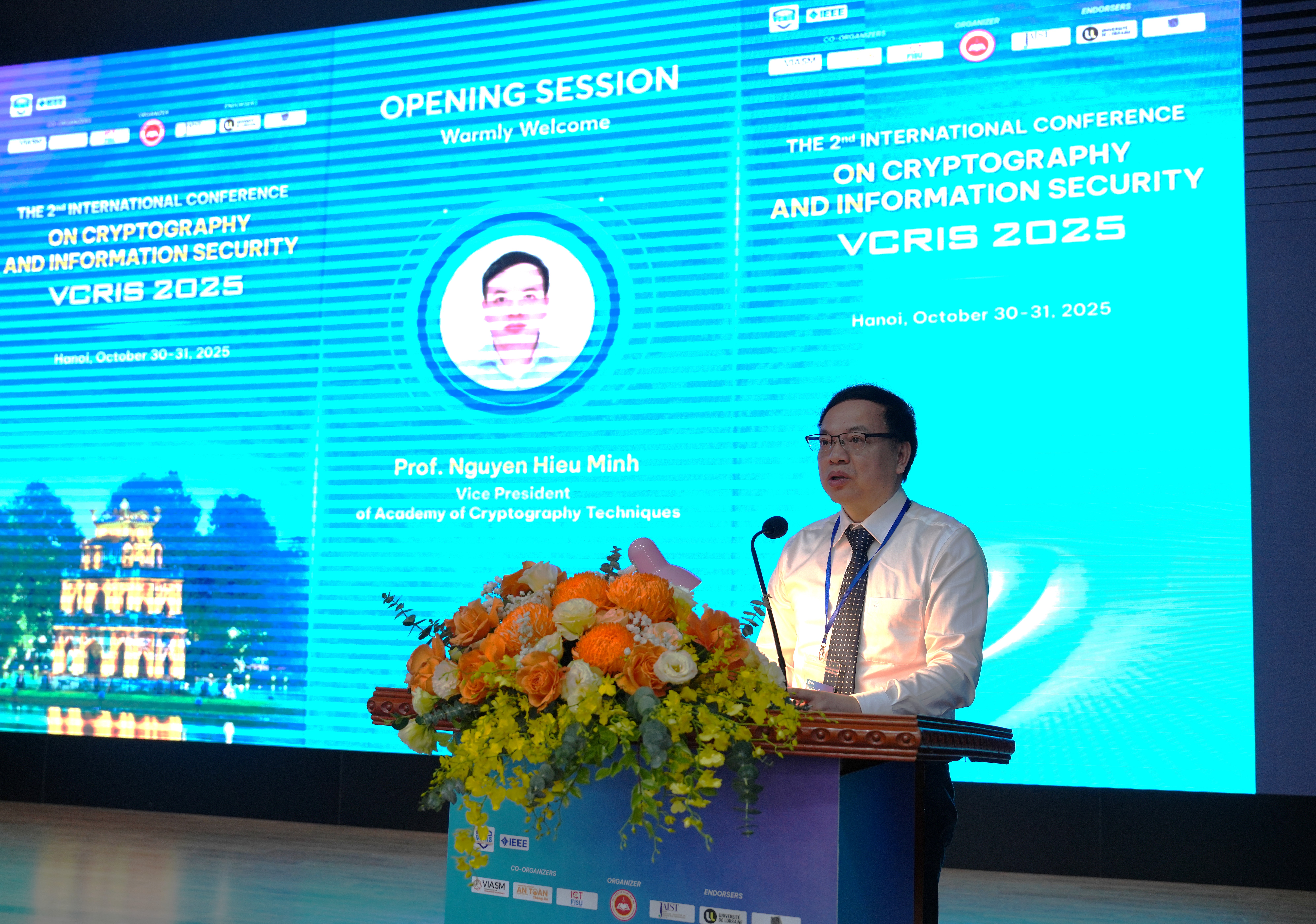 Phát biểu khai mạc, GS. TS. Nguyễn Hiếu Minh, Phó Giám đốc Học viện Kỹ thuật mật mã, Trưởng Ban Tổ chức hội thảo nhấn mạnh: “Sự phát triển mạnh mẽ của công nghệ lượng tử đang đặt ra những thách thức to lớn đối với các hệ thống mật mã hiện hành, đồng thời mở ra cơ hội hình thành các cơ chế bảo mật thế hệ mới. Việc thảo luận, hợp tác nghiên cứu tại VCRIS 2025 có ý nghĩa chiến lược, góp phần định hướng phát triển mật mã hậu lượng tử trong những năm tới.”