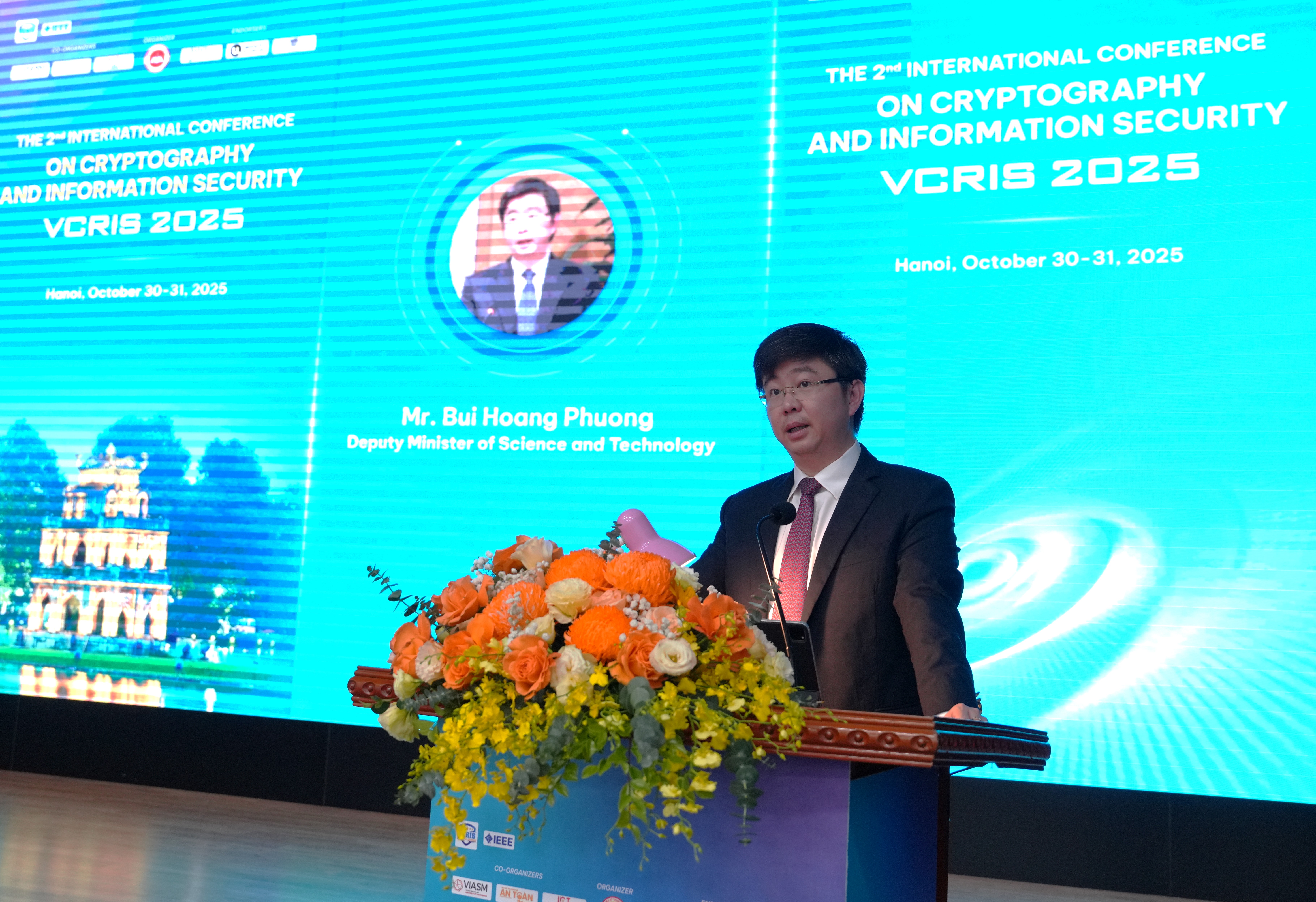 Phát biểu chỉ đạo hội nghị, Thứ trưởng Bộ Khoa học và Công nghệ Bùi Hoàng Phương khẳng định: “VCRIS 2025 là diễn đàn học thuật có ý nghĩa đặc biệt, không chỉ đề cập tới mật mã truyền thống mà còn mở rộng sang truyền thông lượng tử, mật mã hậu lượng tử và an toàn hệ thống IoT. Việc các bài nghiên cứu được xuất bản trên hệ thống IEEE Xplore cho thấy chất lượng và tầm vóc quốc tế của hội thảo.”