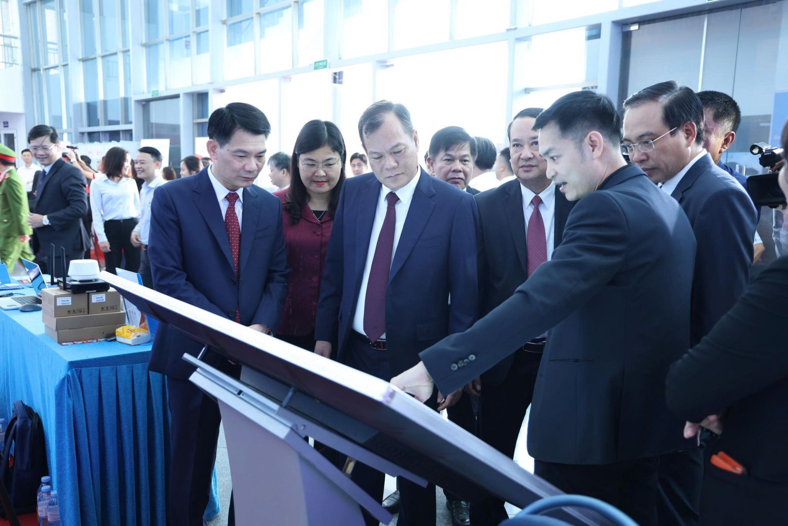 | Các đại biểu tham quan các mô hình công nghệ số. |