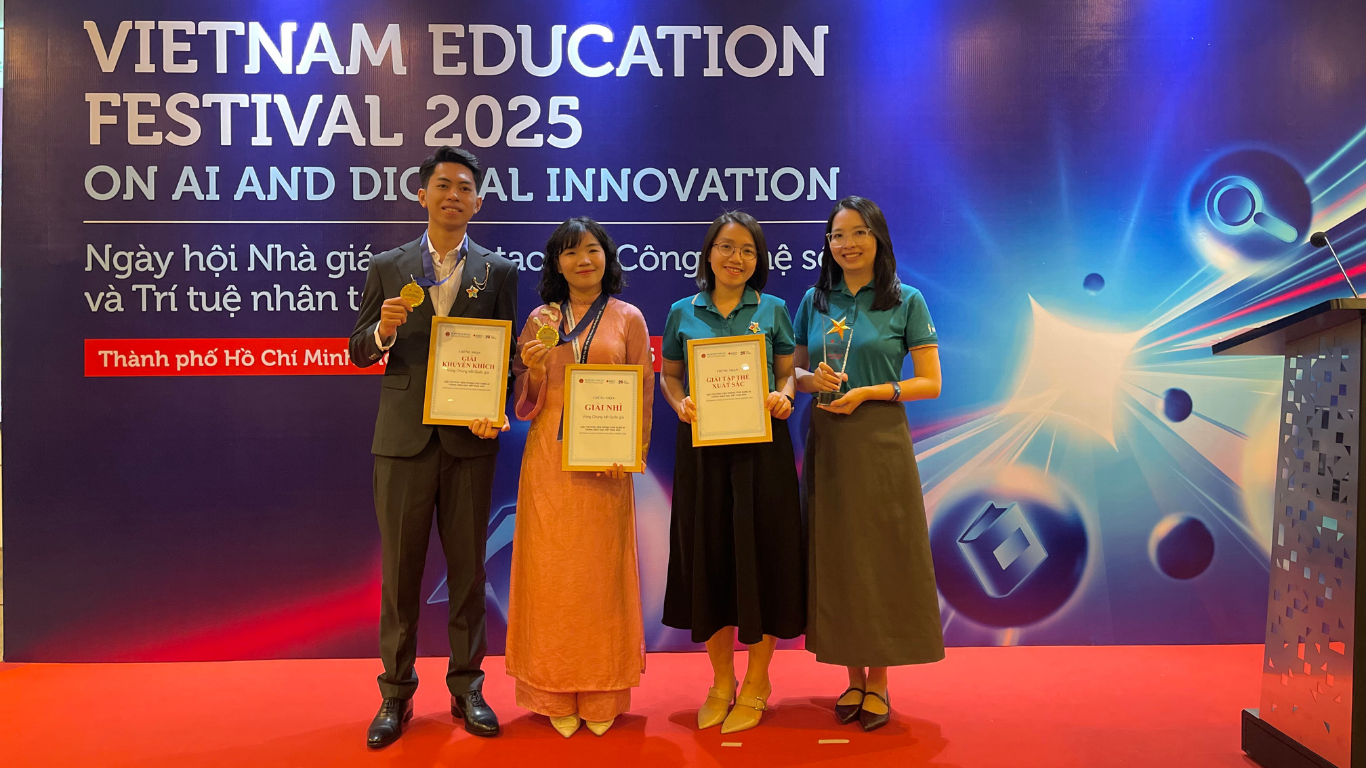 Trong khuôn khổ Diễn đàn Đổi mới Sáng tạo giáo dục Việt Nam với Trí tuệ nhân tạo, Giải thưởng Tiên phong Ứng dụng AI trong Giáo dục Việt Nam 2025 do Bộ Giáo dục và Đào tạo phối hợp với Đại học RMIT Việt Nam tổ chức đã công bố các tập thể, cá nhân đạt giải. Cuộc thi năm nay thu hút hơn 7.700 sản phẩm dự thi của giáo viên và cán bộ quản lý giáo dục trên toàn quốc, trải qua nhiều vòng đánh giá bởi Hội đồng giám khảo gồm 30 chuyên gia đến từ 8 trường đại học trong và ngoài nước.