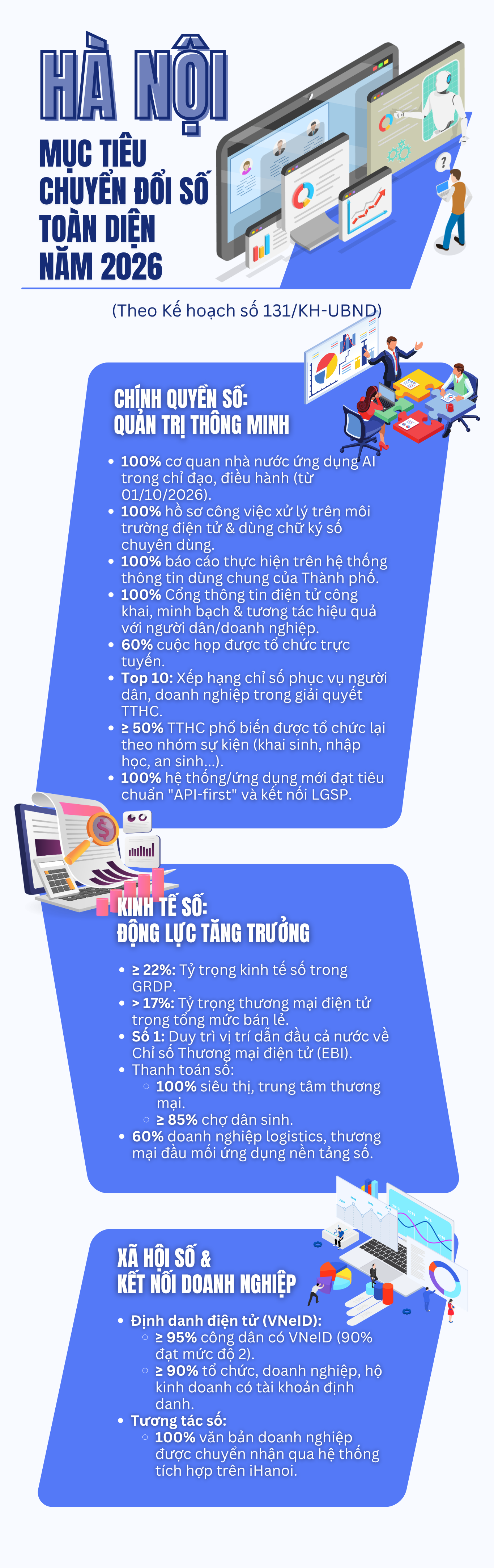 Với lộ trình chi tiết và quyết tâm cao, Kế hoạch chuyển đổi số năm 2026 được kỳ vọng sẽ tạo ra bước ngoặt, đưa Hà Nội tiến nhanh trên con đường xây dựng Thủ đô Văn hiến - Văn minh - Hiện đại.