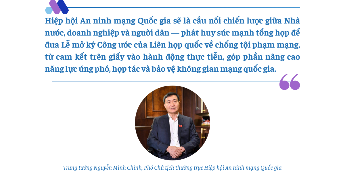 Thưa Trung tướng, sau khi Công ước được ký kết, vai trò "cầu nối" của Hiệp hội An ninh mạng Quốc gia sẽ được thể hiện cụ thể ra sao để đưa Công ước vào cuộc sống?