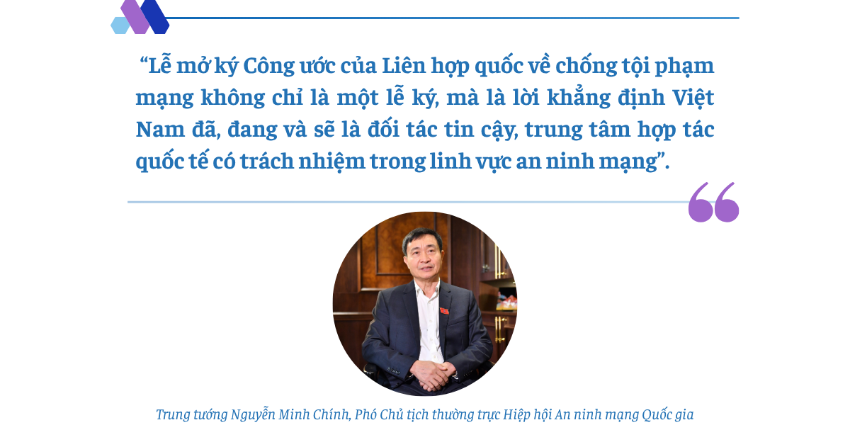 Trao đổi với phóng viên Tạp chí An ninh mạng Việt Nam, Trung tướng Nguyễn Minh Chính - Phó Chủ tịch thường trực Hiệp hội An mạng Quốc gia cho rằng, đây là dấu mốc lịch sử, vừa nâng tầm vị thế chính trị - đối ngoại của Việt Nam, vừa mở ra kỷ nguyên mới của hợp tác toàn cầu trong đấu tranh phòng, chống tội phạm mạng.