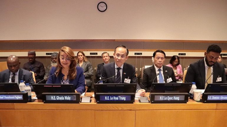 | Ngày 22/9/2025, Bộ Ngoại giao và Bộ Công an Việt Nam phối hợp Văn phòng Liên hợp quốc về Phòng chống ma túy và tội phạm (UNODC) đồng tổ chức sự kiện “Con đường tới Hà Nội: Lễ mở ký Công ước của Liên hợp quốc về chống tội phạm mạng - Tôn vinh chủ nghĩa đa phương vì một tương lai số an toàn". Trong ảnh: Các đồng chủ tọa sự kiện. (Ảnh: TTXVN) |