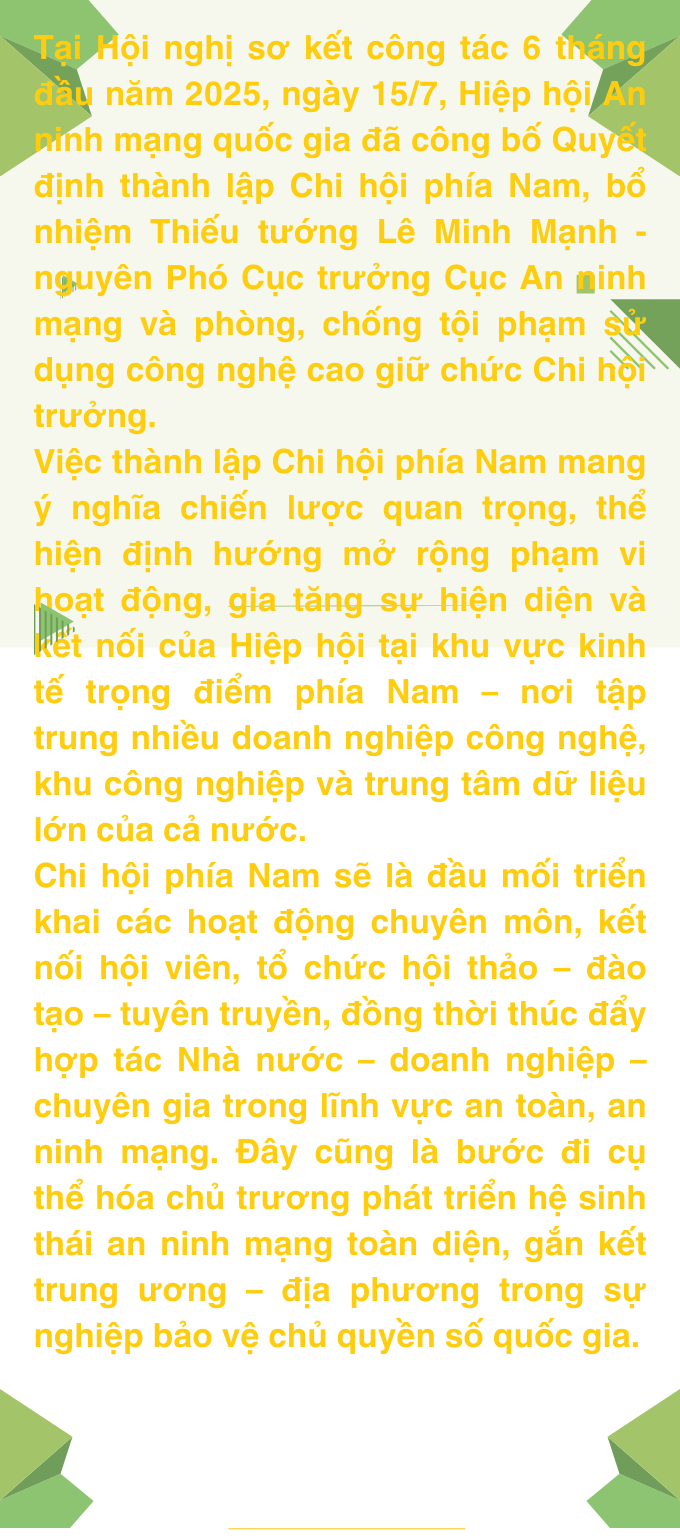 Thưa Thiếu tướng, việc thành lập Chi hội An ninh mạng quốc gia tại phía Nam được ông nhìn nhận như thế nào về mặt chiến lược và tổ chức trong bối cảnh hiện nay?