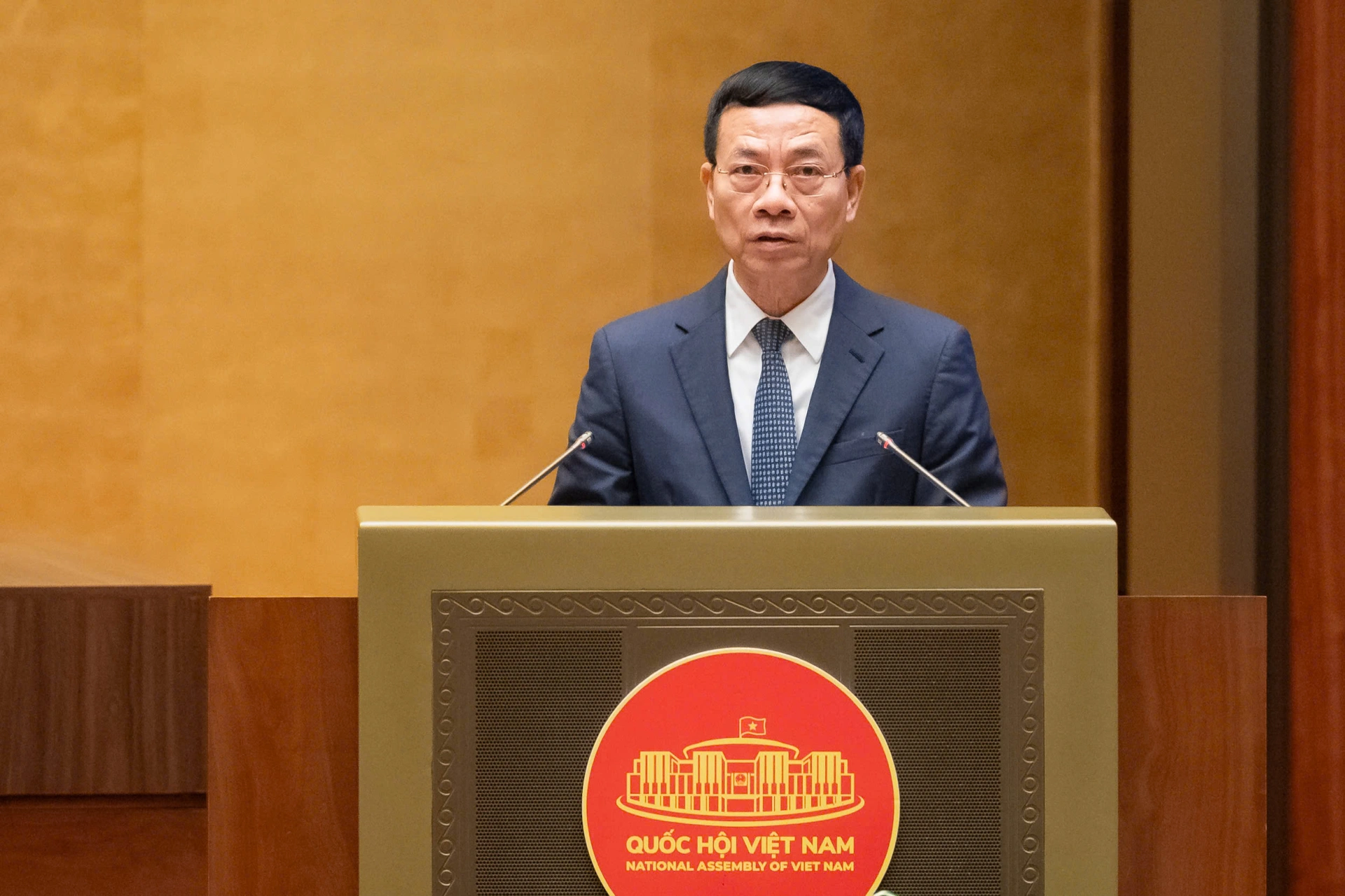 | Bộ trưởng Bộ Khoa học và Công nghệ Nguyễn Mạnh Hùng trình bày Báo cáo giải trình, tiếp thu, chỉnh lý dự thảo Luật Chuyển đổi số. |