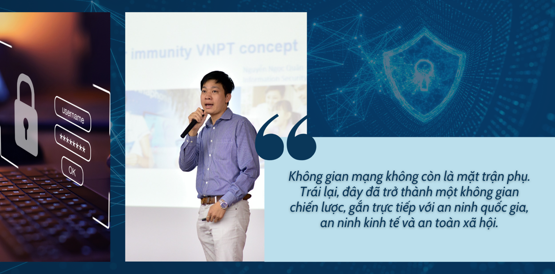 Ông Quân cho rằng những nguy cơ như tấn công APT, tấn công chuỗi cung ứng, hay việc lợi dụng trí tuệ nhân tạo, công nghệ deepfake để phục vụ các hoạt động xâm nhập, lừa đảo đang cho thấy không gian mạng không còn là mặt trận phụ. Trái lại, đây đã trở thành một không gian chiến lược, gắn trực tiếp với an ninh quốc gia, an ninh kinh tế và an toàn xã hội. Những mục tiêu bị nhắm tới hiện nay không chỉ là hệ thống công nghệ thông tin đơn thuần mà còn là các hạ tầng trọng yếu như viễn thông, tài chính, năng lượng, cùng với các kho dữ liệu quốc gia và dữ liệu công dân.
