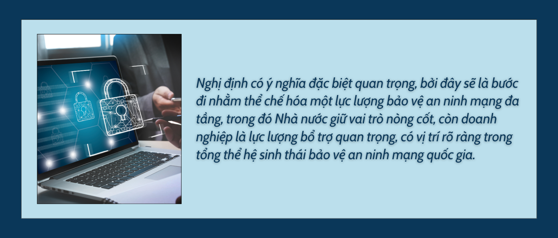 Từ góc nhìn đó, ông cho rằng Nghị định lần này có ý nghĩa đặc biệt quan trọng, bởi đây sẽ là bước đi nhằm thể chế hóa một lực lượng bảo vệ an ninh mạng đa tầng, trong đó Nhà nước giữ vai trò nòng cốt, còn doanh nghiệp là lực lượng bổ trợ quan trọng, có vị trí rõ ràng trong tổng thể hệ sinh thái bảo vệ an ninh mạng quốc gia.