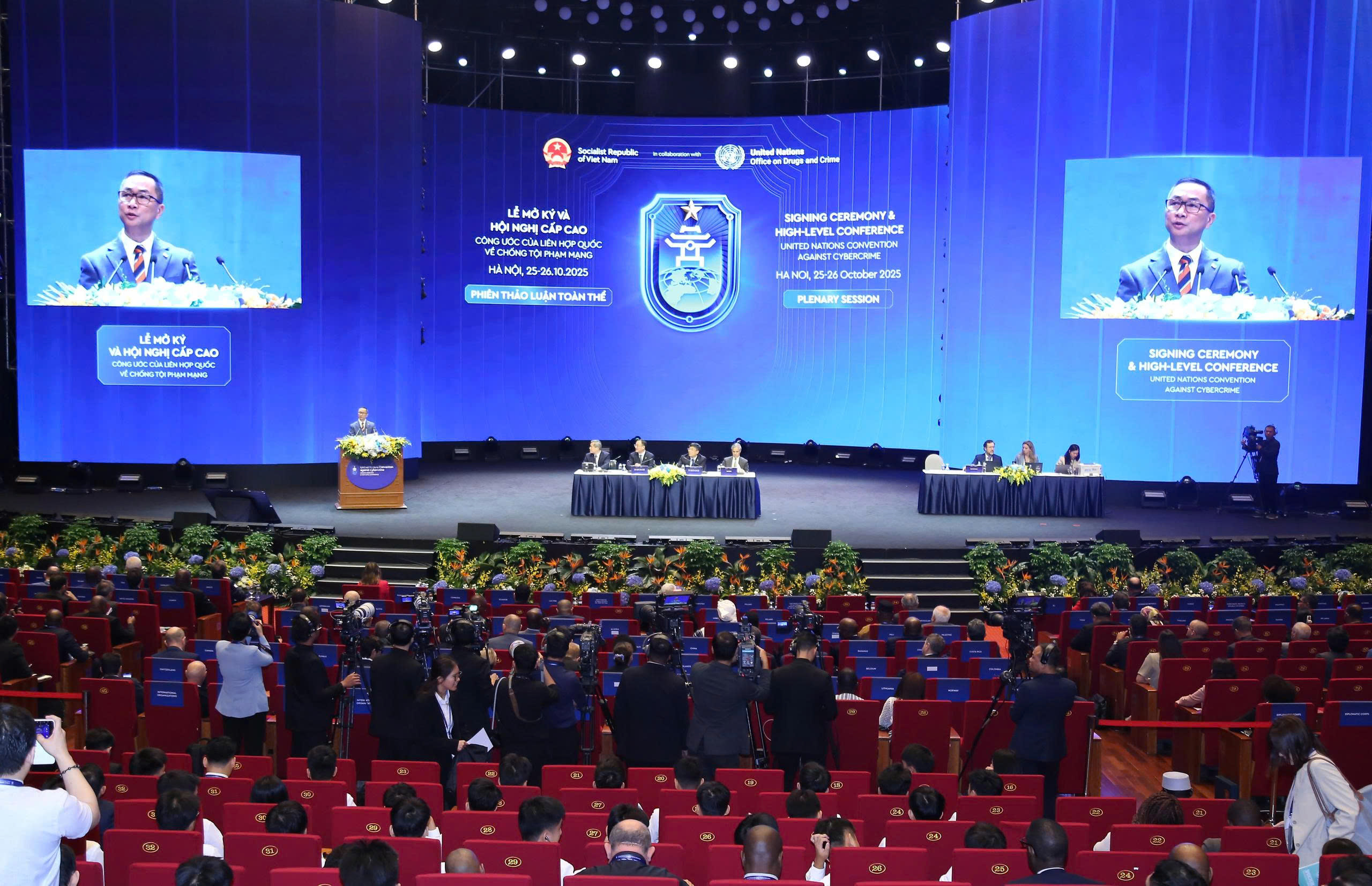 | Trân trọng cảm ơn các đối tác Vietinbank, PETROVIETNAM, EVN, MB Bank, Agribank, SSI, FPT, VPBank, Gelex, Vietnam Airlines, VIX, BIDV, VIETTEL, OKX, VNPT và Napas đã đồng hành cùng Lễ mở ký "Công ước Liên hợp quốc về chống tội phạm mạng" – nơi cam kết được chuyển hóa thành hành động, vì một không gian mạng an toàn, phát triển và nhân văn. |