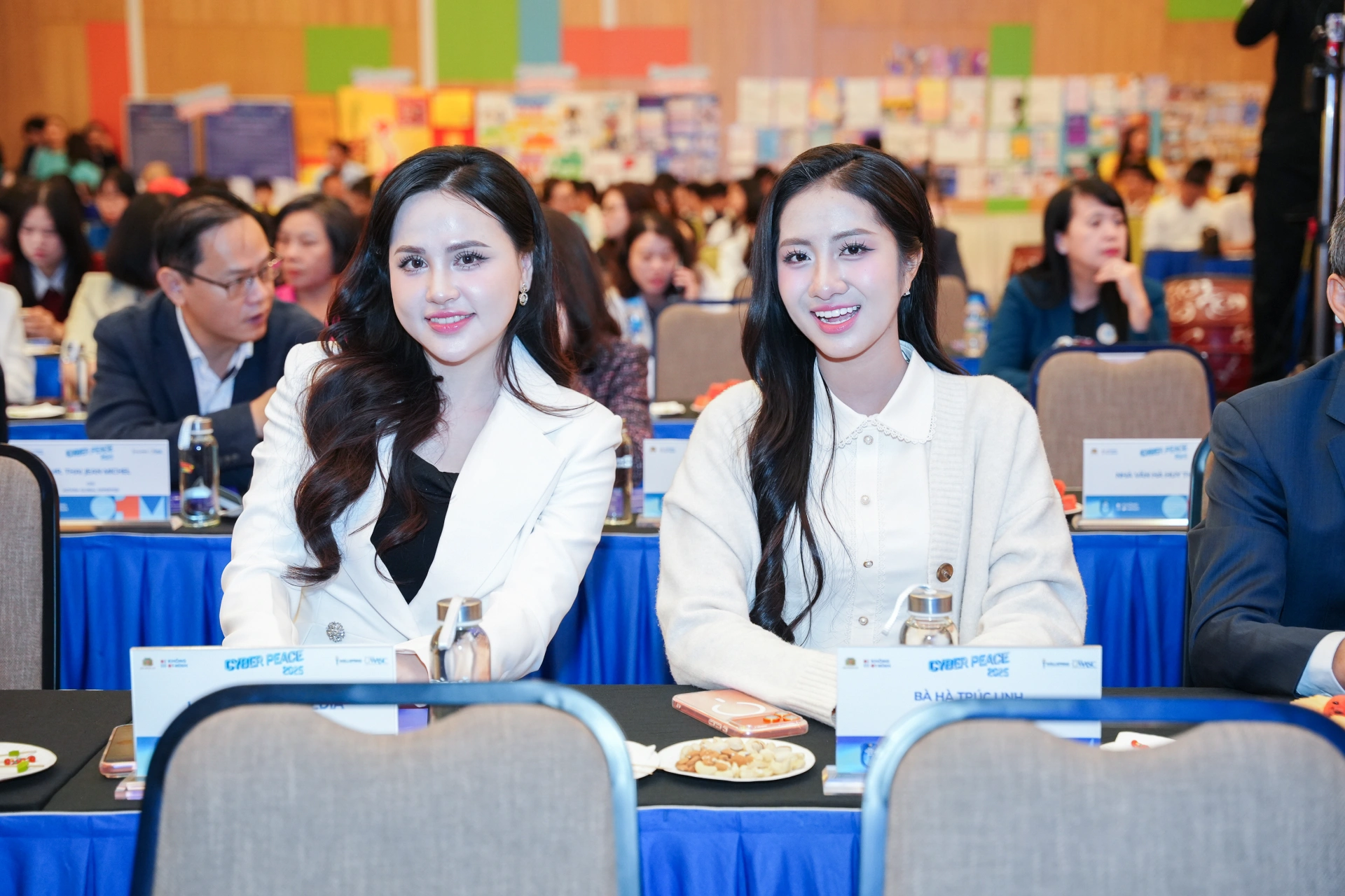 | Hoa hậu Hà Trúc Linh tham gia hưởng ứng sự kiện Cyber Peace 2025 bảo vệ trẻ em trên môi trường số. |