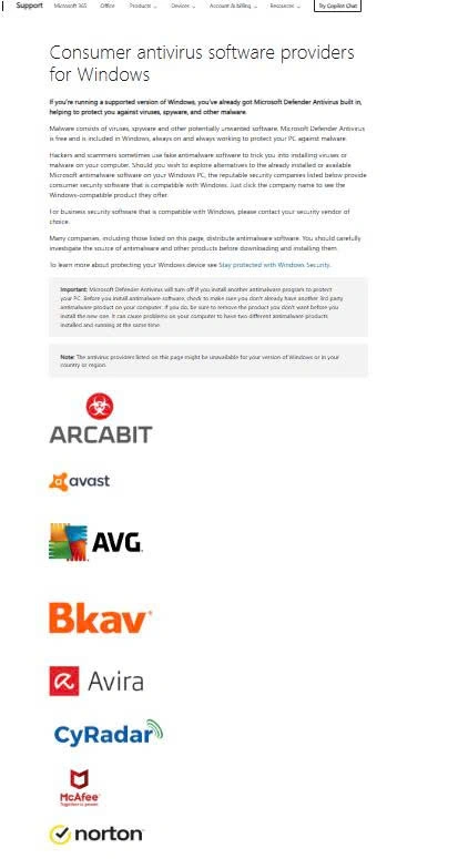 | Đến ngày 3/12, Microsoft cập nhật bổ sung thêm BKAV vào danh sách các nhà cung cấp phần mềm chống mã độc dành cho người dùng Windows. Ảnh chụp màn hình. |