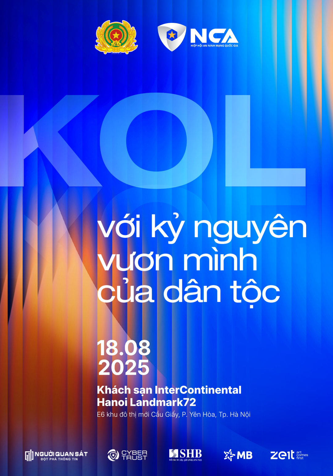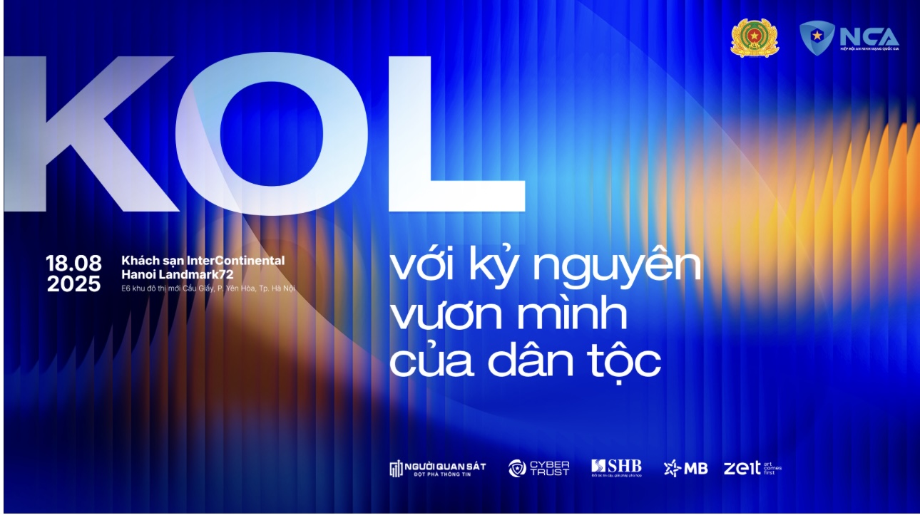 Ngày 18/8, Hội nghị “KOL với kỷ nguyên vươn mình của dân tộc” (KOL summit 2025) do Hiệp hội An ninh mạng quốc gia phối hợp Cục An ninh mạng và phòng, chống tội phạm sử dụng công nghệ cao tổ chức sẽ diễn ra tại Hà Nội, quy tụ gần 300 KOL tiêu biểu, đại diện từ 34 tỉnh, thành trên cả nước.