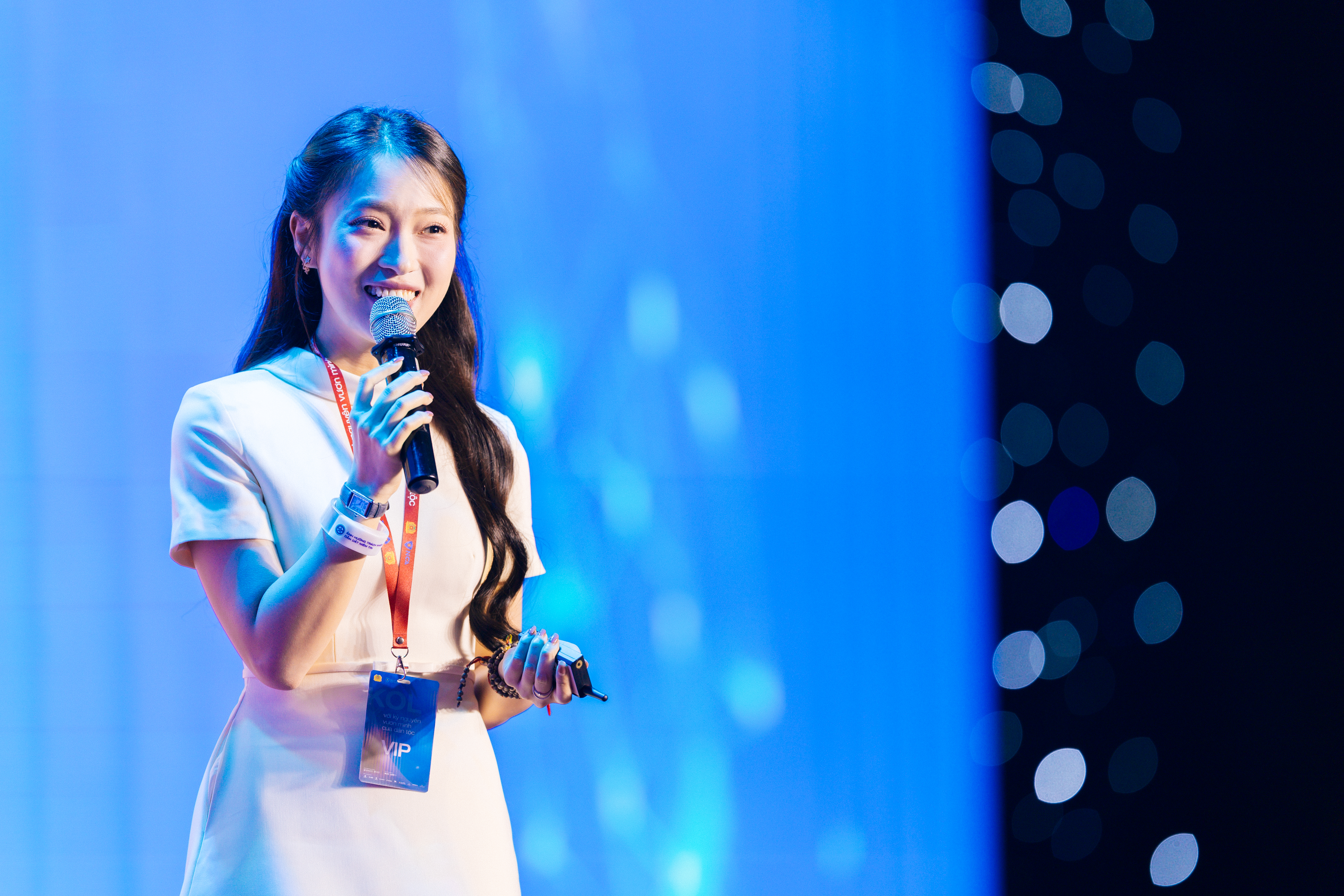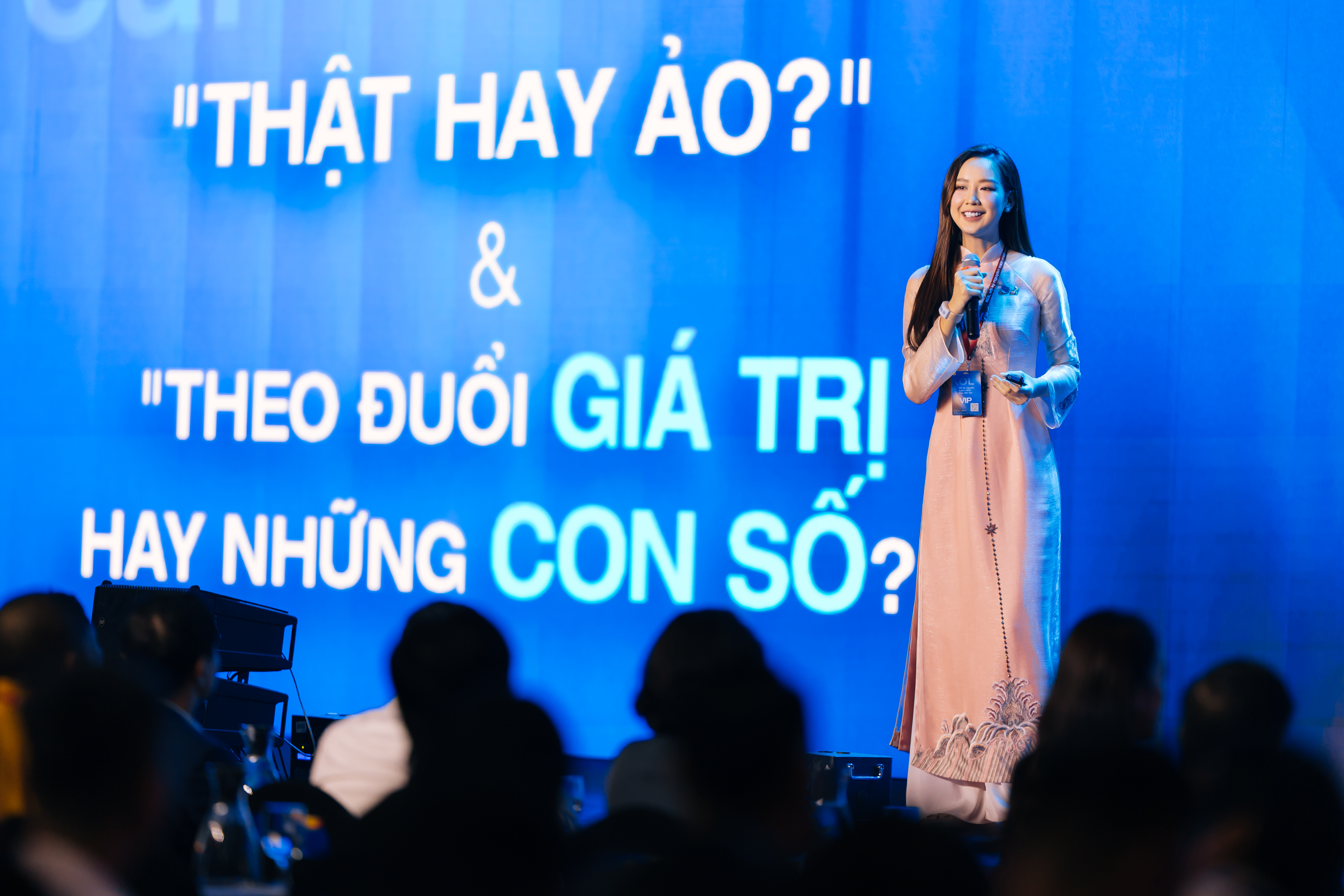 | Nhà sáng tạo nội dung - MC - diễn giả Trần Khánh Vy chia sẻ tại Hội nghị "KOL với kỷ nguyên vươn mình của dân tộc". |
