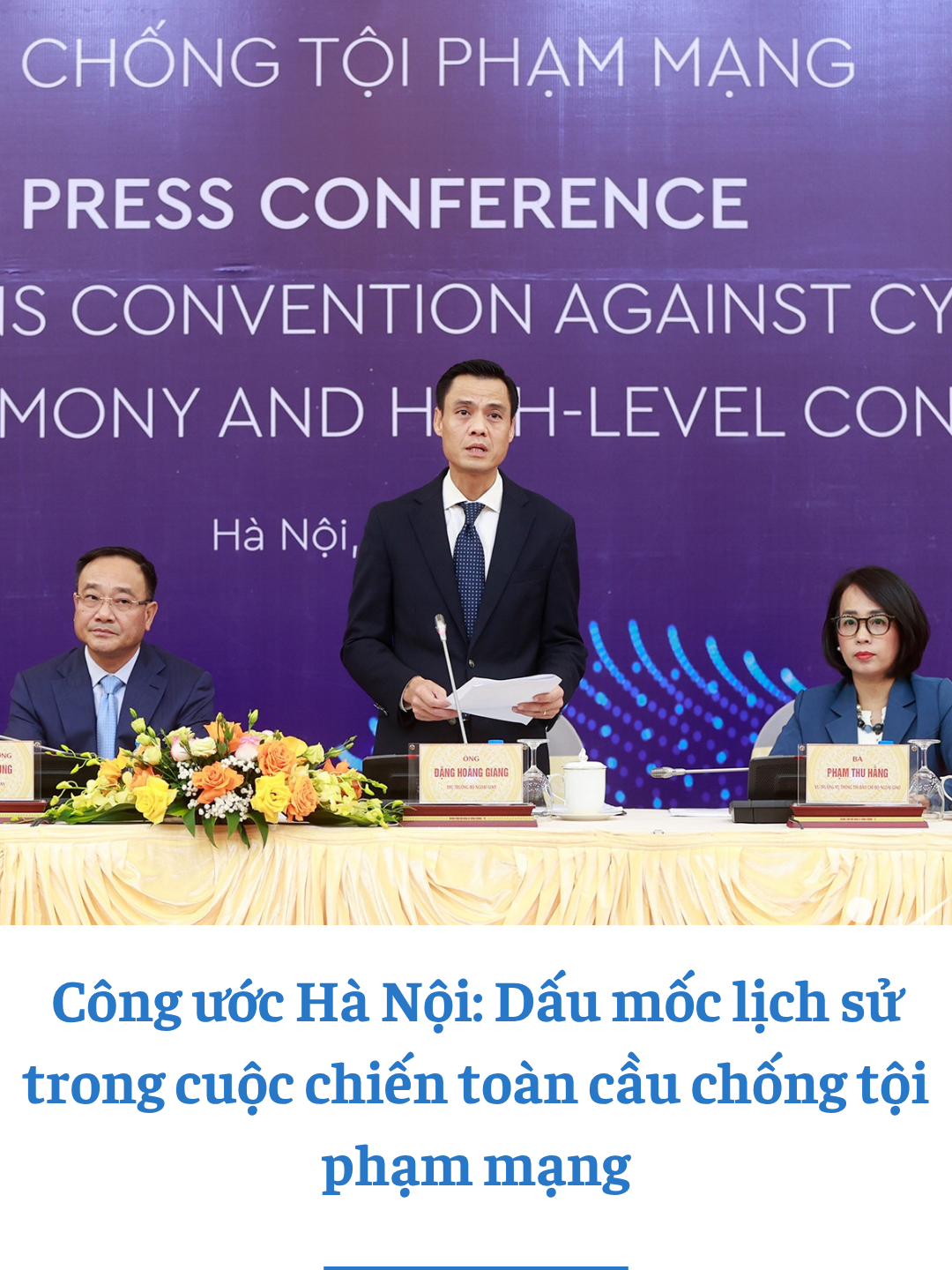 Chiều ngày 8/10 tại Hà Nội, Bộ Ngoại giao phối hợp với Bộ Công an tổ chức họp báo quốc tế thông tin về Lễ mở ký Công ước của Liên hợp quốc về chống tội phạm mạng (Công ước Hà Nội).Thứ trưởng Công an, Thượng tướng Phạm Thế Tùng và Thứ trưởng Bộ Ngoại giao Đặng Hoàng Giang đồng chủ trì họp báo. Tham dự sự kiện có các đại sứ, trưởng đại diện cơ quan đại diện nước ngoài, các tổ chức quốc tế tại Việt Nam, cùng đông đảo phóng viên cơ quan báo chí trong nước và nước ngoài thường trú tại Việt Nam.