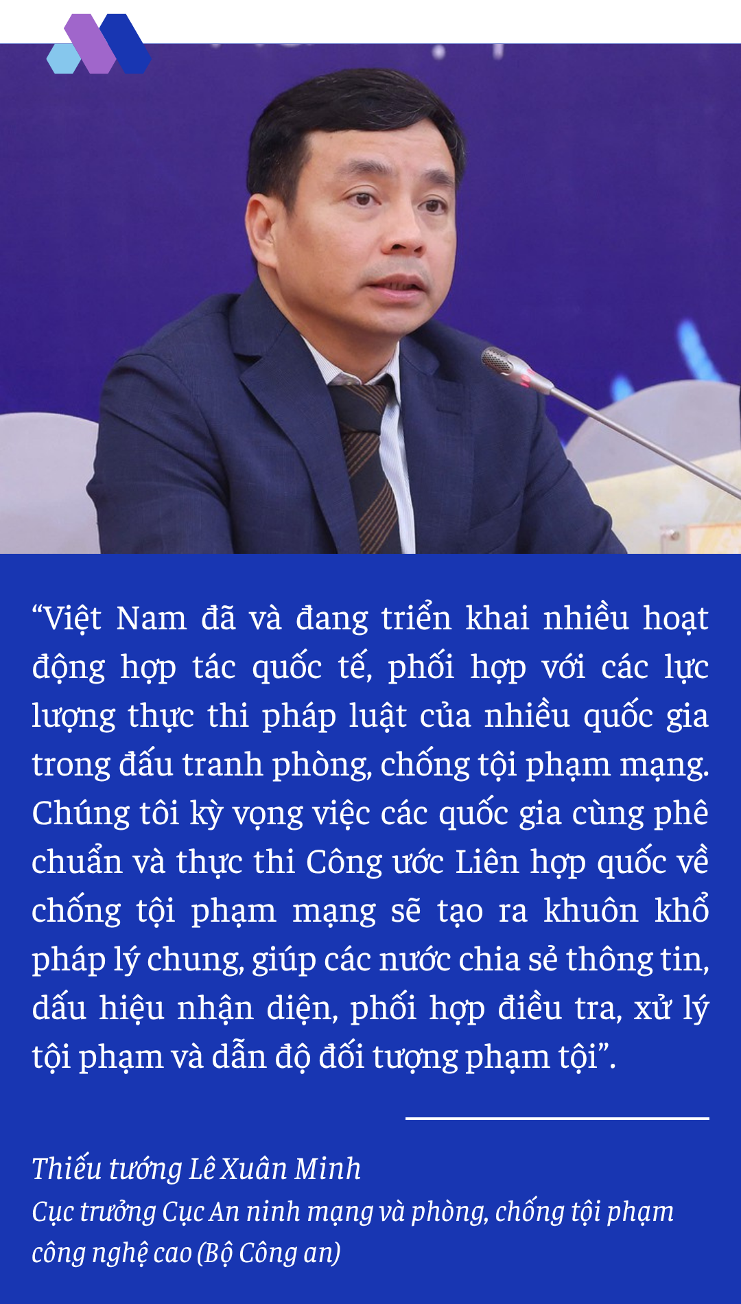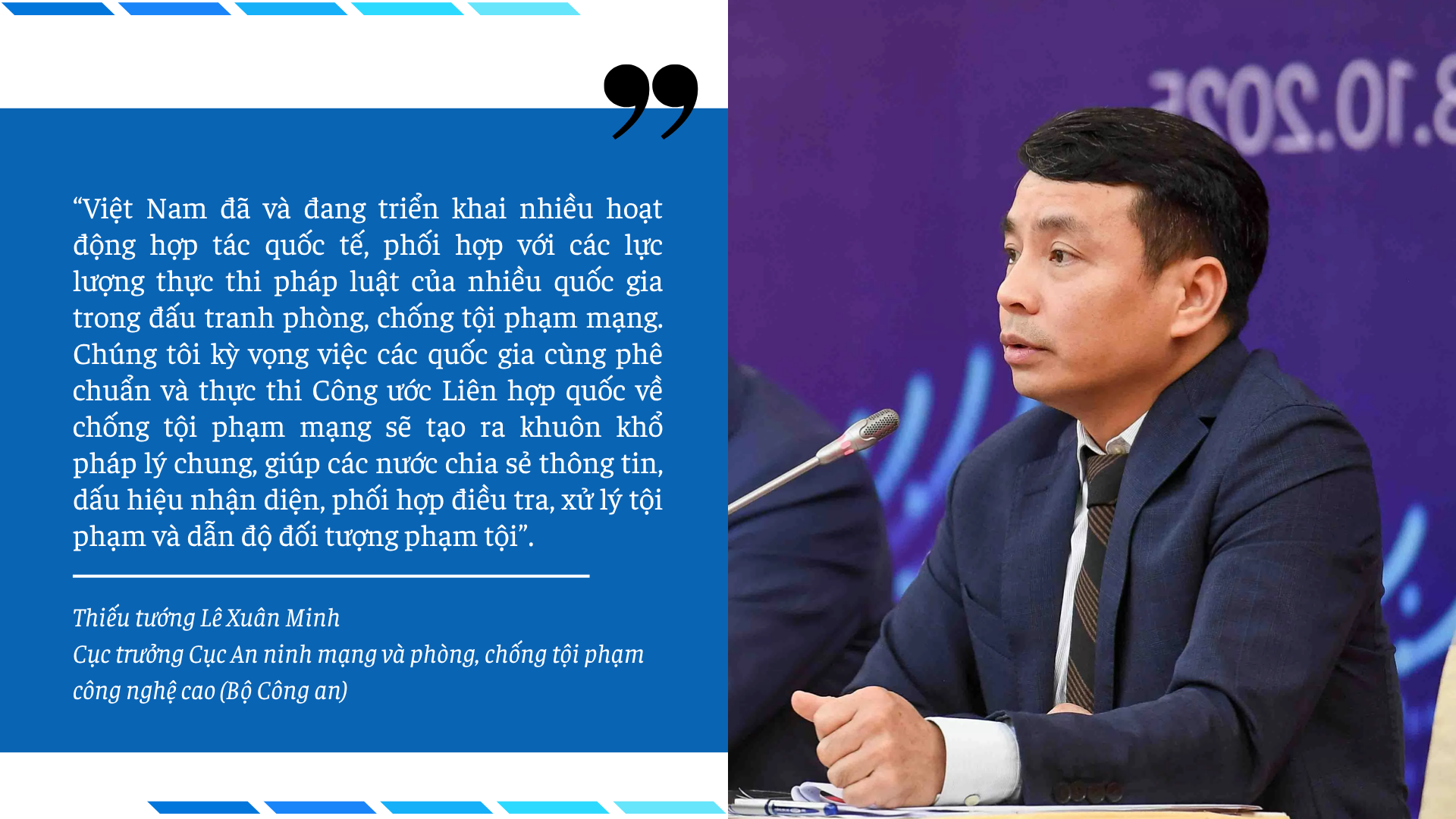 Thiếu tướng Lê Xuân Minh cũng cho biết, Việt Nam đang tăng cường năng lực cho lực lượng chuyên trách về an ninh mạng, hoàn thiện hành lang pháp lý đạt chuẩn quốc tế và đẩy mạnh tuyên truyền nâng cao nhận thức cộng đồng, giúp người dân hiểu rõ hơn về bảo vệ dữ liệu cá nhân và sử dụng công nghệ một cách an toàn. “Mục tiêu là xây dựng không gian mạng an toàn, lành mạnh, được sử dụng vì mục đích hòa bình và phát triển chung của nhân loại”, ông khẳng định.