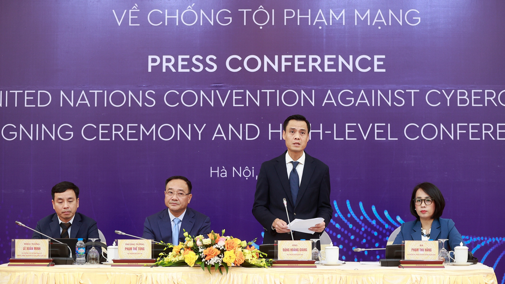Chiều ngày 8/10 tại Hà Nội, Bộ Ngoại giao phối hợp với Bộ Công an tổ chức họp báo quốc tế thông tin về Lễ mở ký Công ước của Liên hợp quốc về chống tội phạm mạng (Công ước Hà Nội).Thứ trưởng Công an, Thượng tướng Phạm Thế Tùng và Thứ trưởng Bộ Ngoại giao Đặng Hoàng Giang đồng chủ trì họp báo. Tham dự sự kiện có các đại sứ, trưởng đại diện cơ quan đại diện nước ngoài, các tổ chức quốc tế tại Việt Nam, cùng đông đảo phóng viên cơ quan báo chí trong nước và nước ngoài thường trú tại Việt Nam.