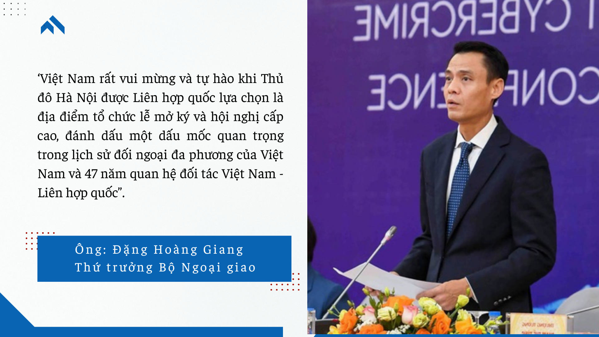 Phát biểu tại họp báo, Thứ trưởng Bộ Ngoại Giao Đặng Hoàng Giang cho biết: 'Tình hình thế giới và khu vực diễn biến phức tạp, trong đó tội phạm mạng nổi lên như một thách thức, mối đe dọa rất nguy hiểm đối với an ninh, chủ quyền và toàn vẹn lãnh thổ của các quốc gia, đặt ra yêu cầu cấp bách cho các nước trong việc tăng cường hợp tác quốc tế và xây dựng khuôn khổ pháp lý toàn cầu để ứng phó với mối nguy hại này".