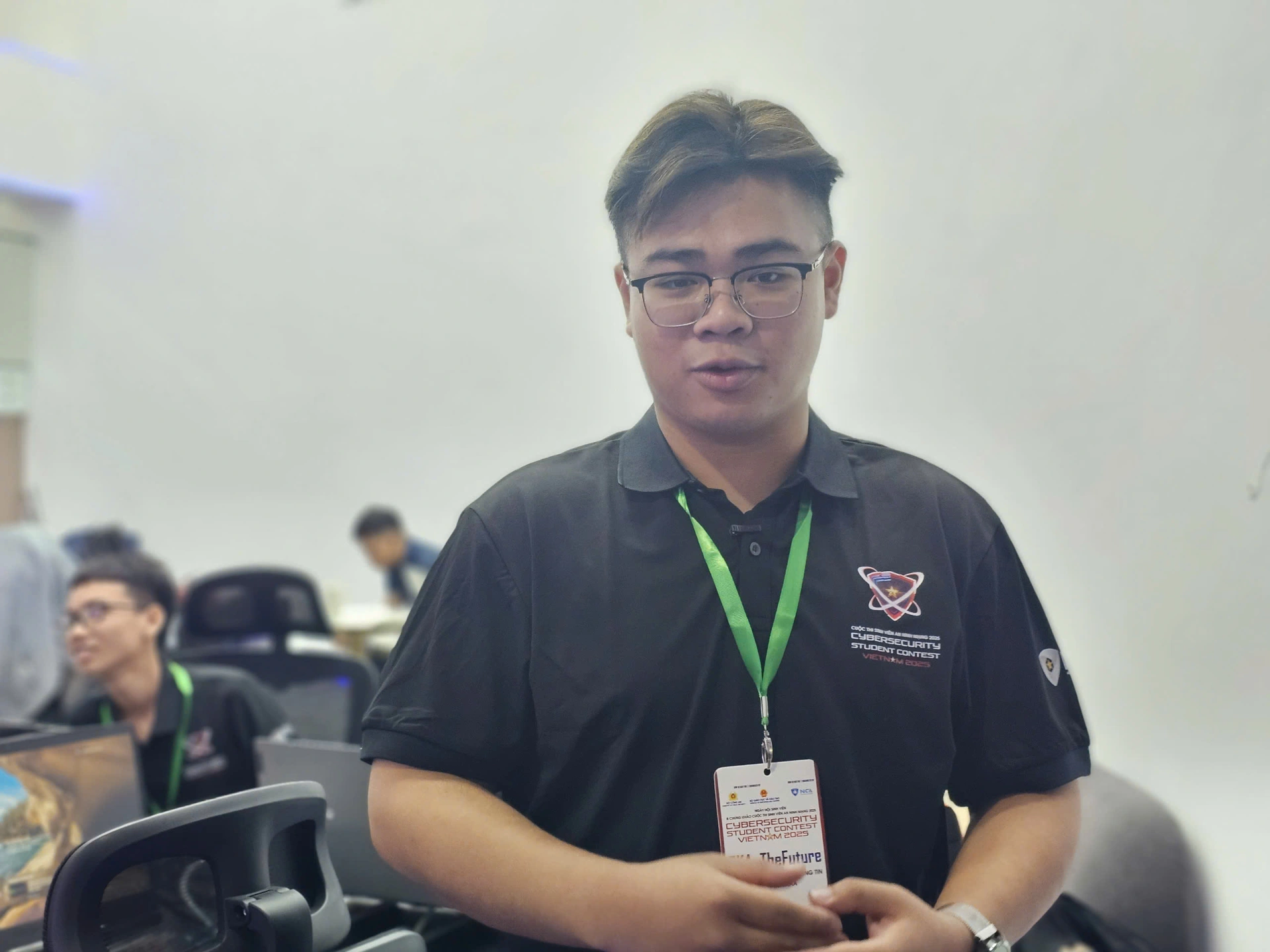 | Thí sinh Vũ Văn Hoàng sinh viên Đại học Phenikaa, một trong các thí sinh tham dự vòng Chung khảo Cuộc thi Sinh viên An ninh mạng 2025. |