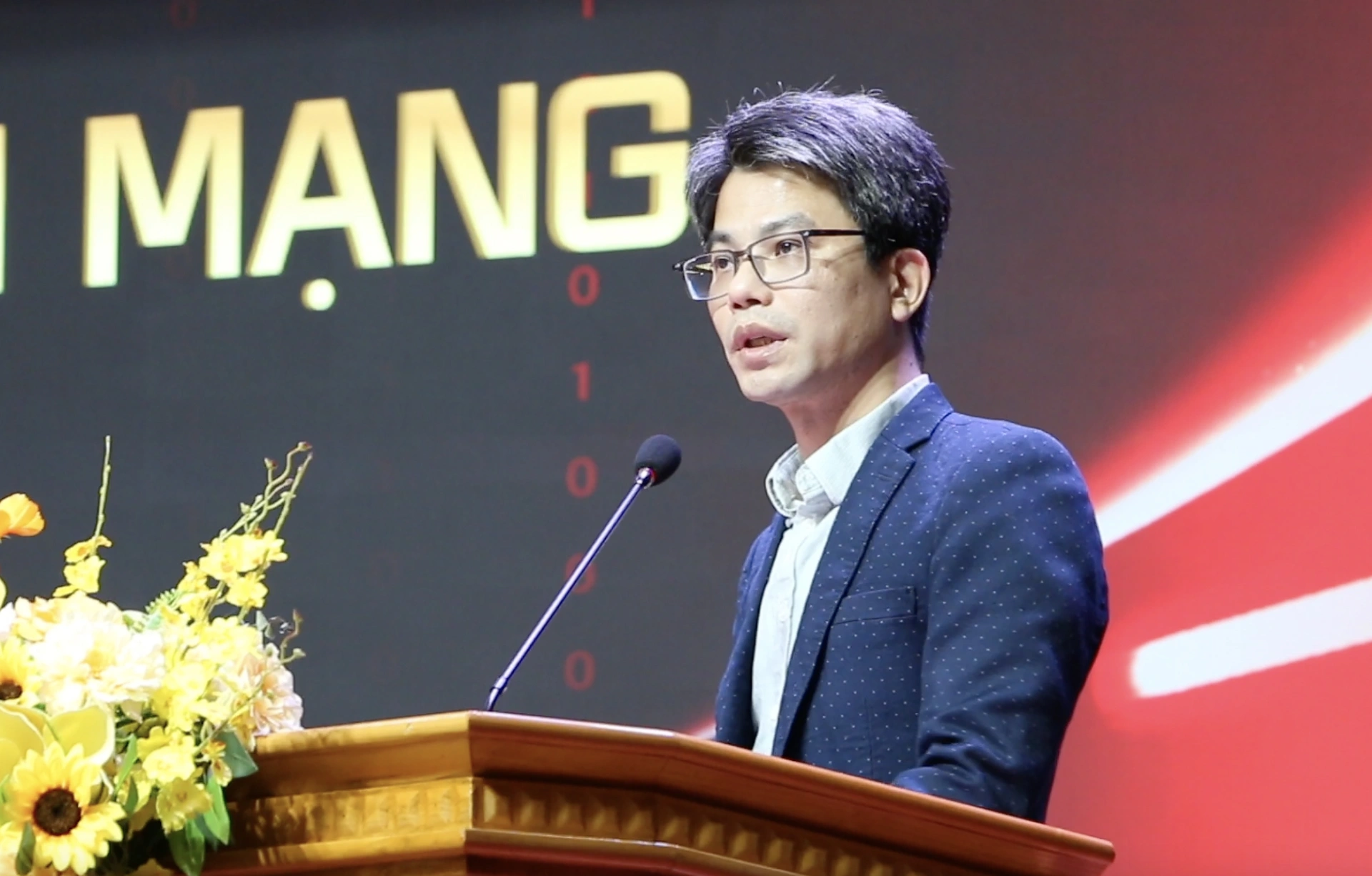| Thượng tá Triệu Mạnh Tùng - Phó Cục trưởng An ninh mạng và phòng, chống tội phạm sử dụng công nghệ cao (A05); Ủy viên Ban chấp hành Hiệp hội An ninh mạng Quốc gia phát biểu tại chương trình Unitour. Ảnh Đăng Khoa. |