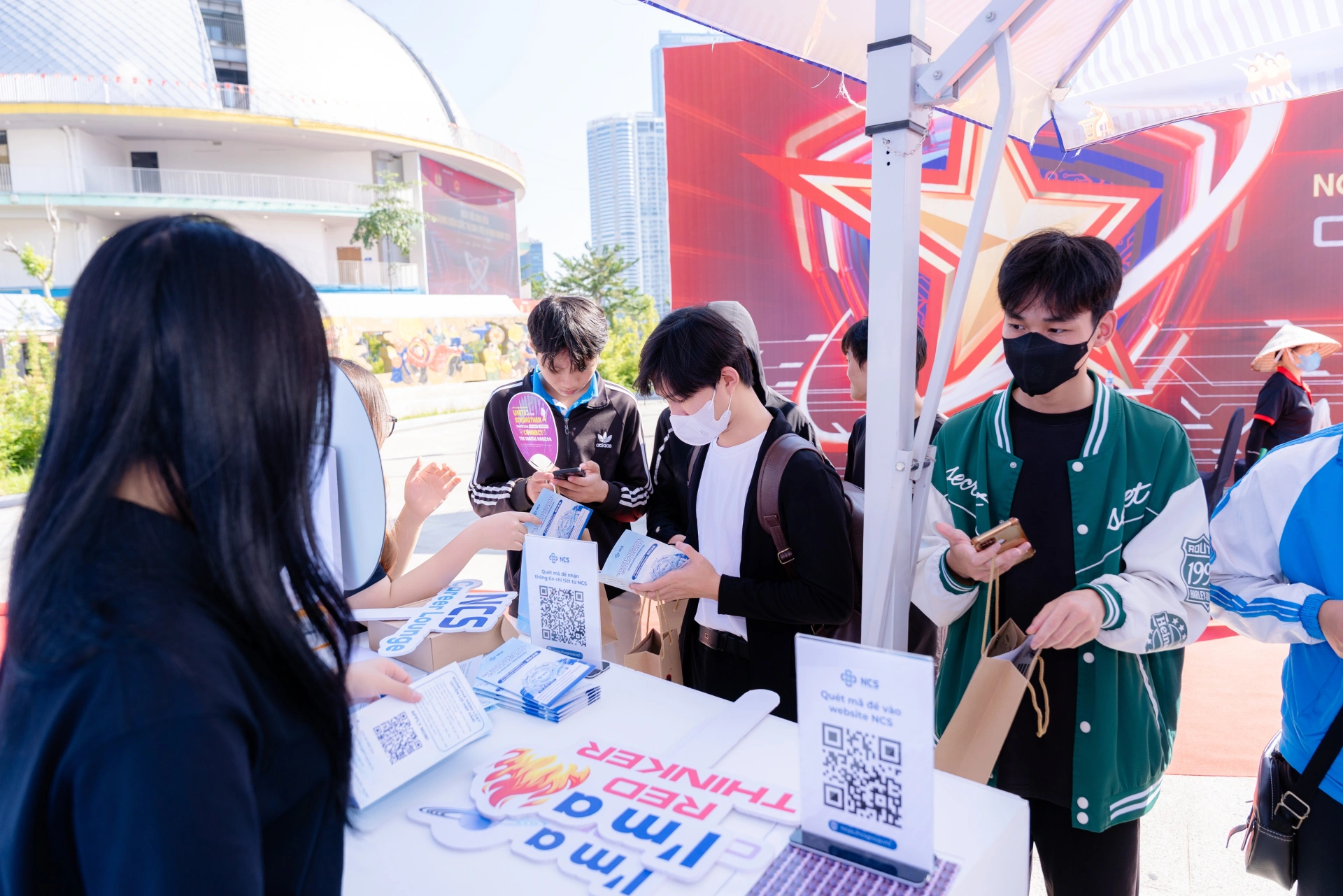 | Sinh viên hào hứng trải nghiệm và tham gia minigame tại gian hàng của Hiệp hội An ninh mạng Quốc gia (NCA) để nhận quà từ ban tổ chức. |