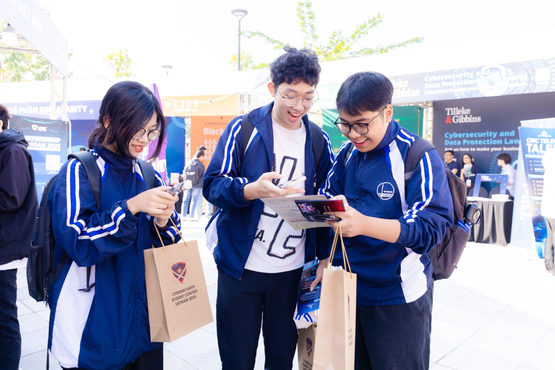 Tại nhóm gian hàng của doanh nghiệp và các tổ chức công nghệ, nhiều sinh viên dành hàng chục phút để trao đổi trực tiếp cùng đại diện nhân sự và chuyên gia. Các đơn vị mang đến thông tin về chương trình thực tập, cơ hội tuyển dụng, khóa đào tạo chuyên sâu, cũng như trưng bày những công nghệ mới trong lĩnh vực an toàn - an ninh mạng.