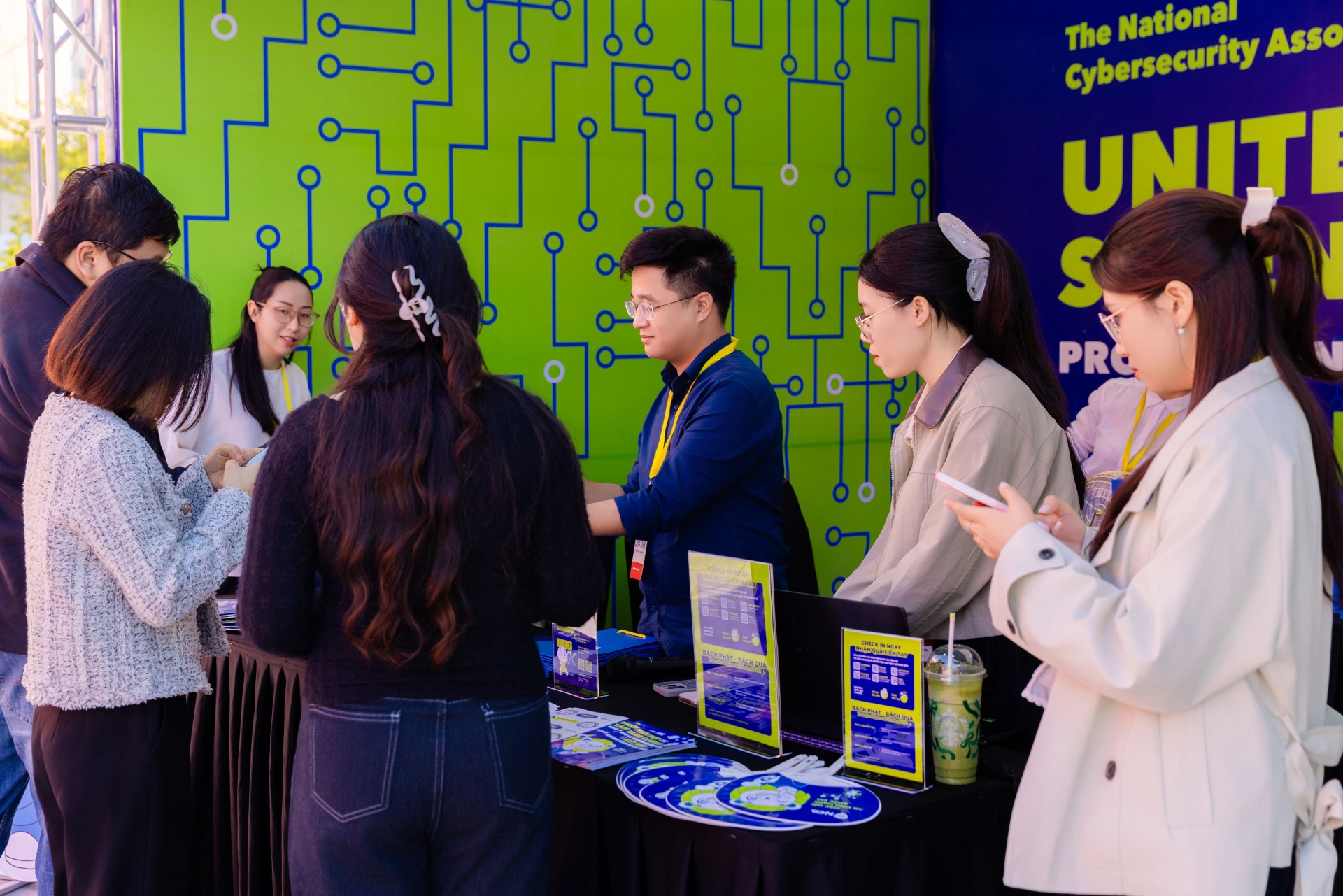 Không chỉ dừng lại ở hoạt động tuyển dụng, các gian hàng còn tổ chức nhiều chương trình minigame, thử thách tương tác và trải nghiệm công nghệ thực tế, tạo nên bầu không khí vui tươi và gần gũi. Tại gian hàng của Hiệp hội An ninh mạng Quốc gia, hàng trăm sinh viên hào hứng tham gia các trải nghiệm mô phỏng, trả lời câu hỏi công nghệ để nhận quà tặng từ ban tổ chức. Nhiều bạn trẻ chia sẻ rằng chính các hoạt động này giúp các bạn tiếp cận kiến thức an toàn thông tin theo cách trực quan và thú vị hơn.