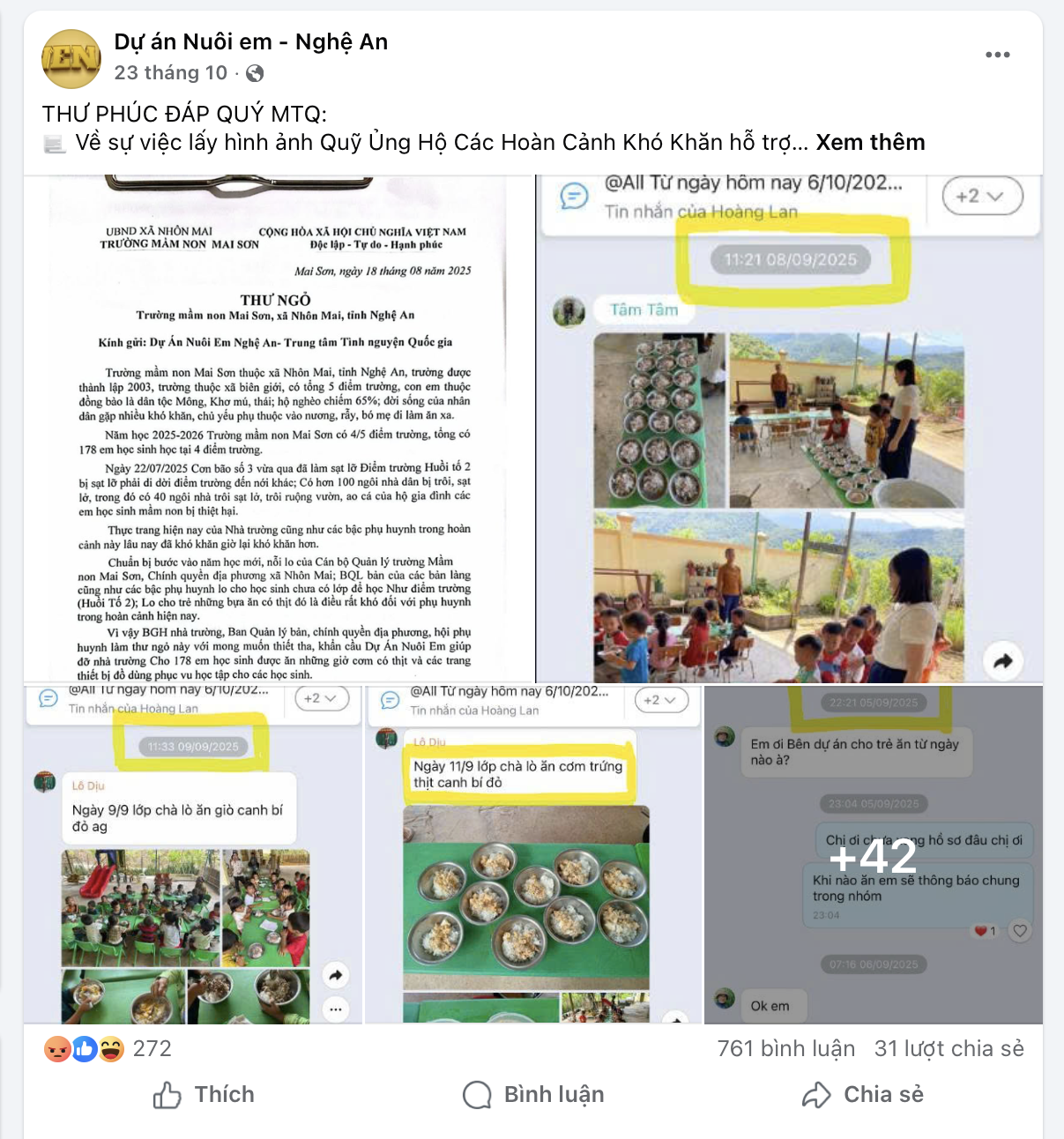 Sự im lặng của người điều hành dự án “Nuôi em ở Nghệ An” trước đề nghị giải trình tài chính khiến nhiều nhà hảo tâm bức xúc, gửi đơn đề nghị Công an Nghệ An xác minh việc sử dụng nguồn kinh phí hỗ trợ cho học sinh vùng cao.