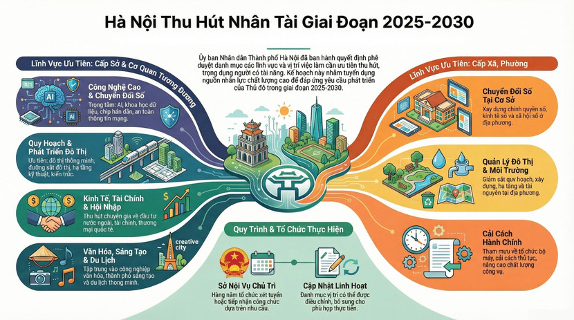 Hà Nội tập trung tìm kiếm chuyên gia trong các lĩnh vực công nghệ mũi nhọn như AI, chip bán dẫn, đường sắt đô thị và chuyển đổi số để giải quyết những bài toán phát triển đô thị cấp bách.