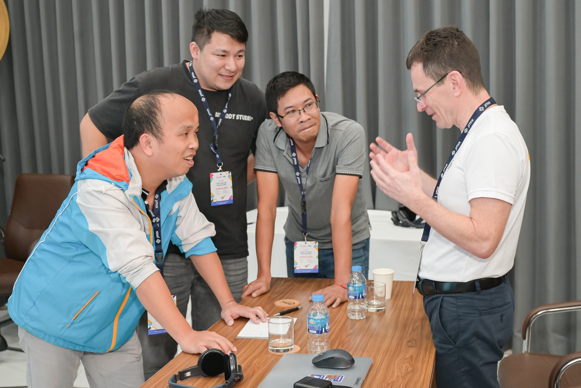 | Ông Trương Minh Hùng – Trưởng nhóm phát triển FPT IS trao đổi cách các nhóm Java nâng cao năng suất trong các dự án với Jmix. |